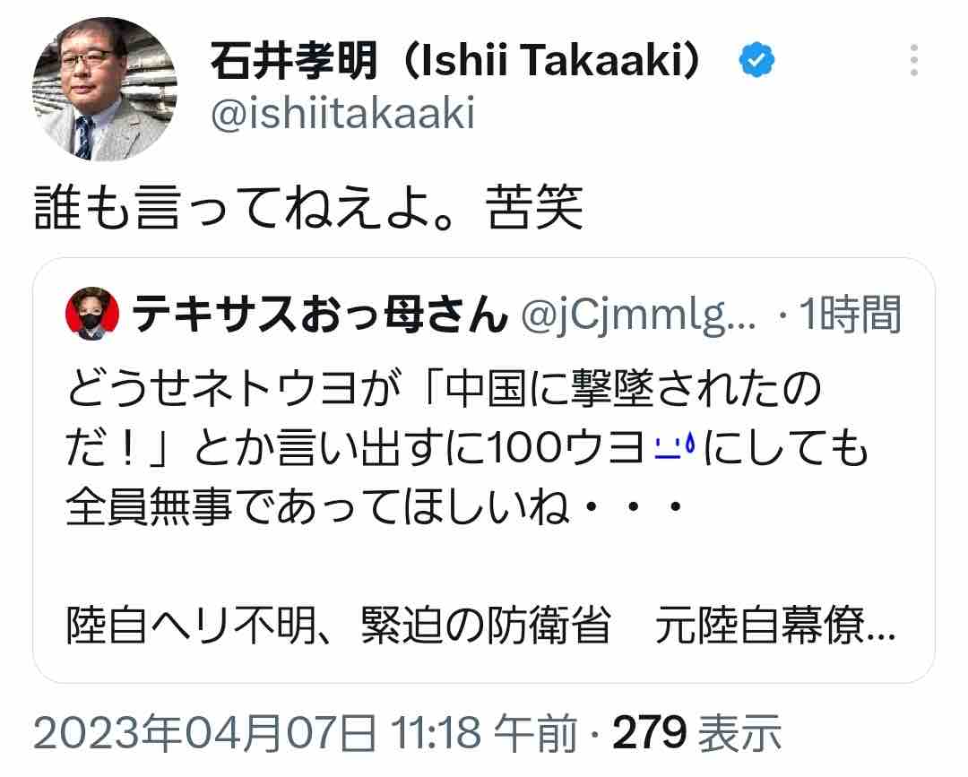 『どうせネトウヨが「中国に撃墜されたのだ!」とか言い出すに100ウヨ😓にしても全員無事であってほしいね・・・』