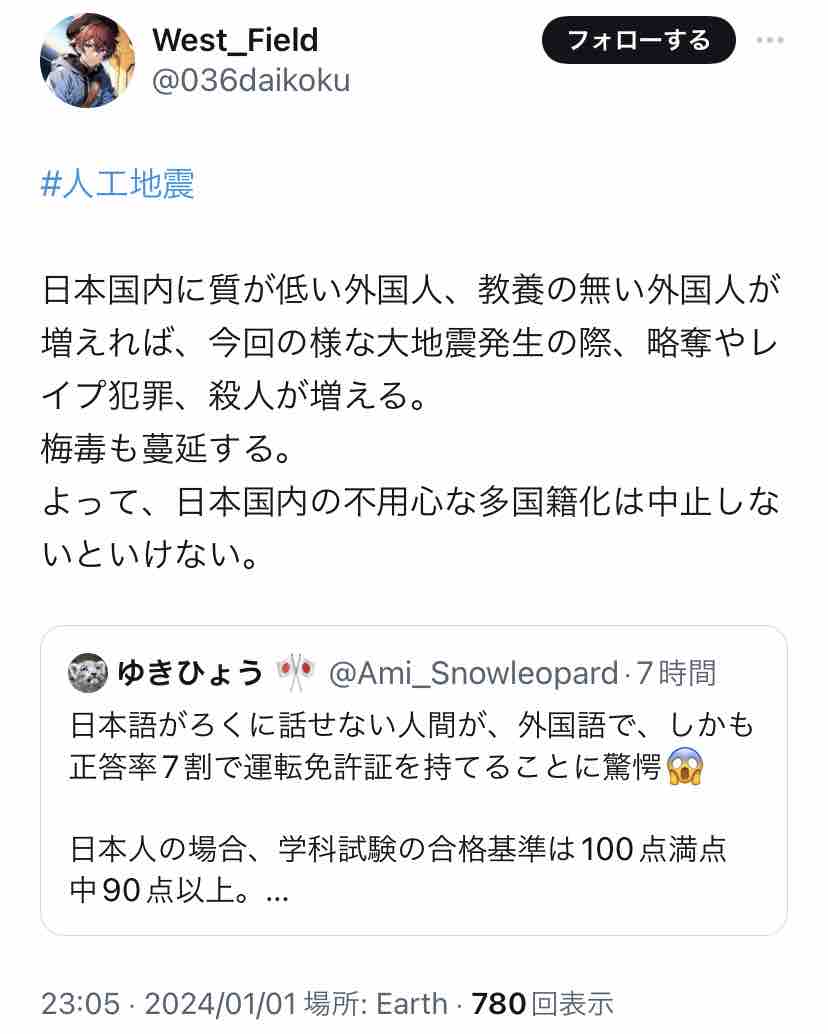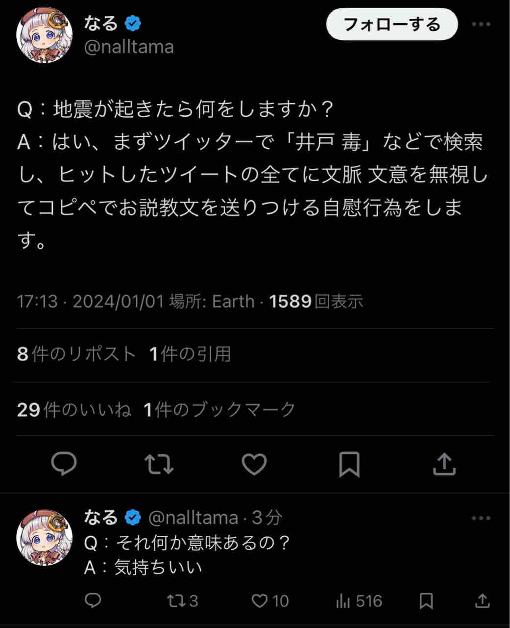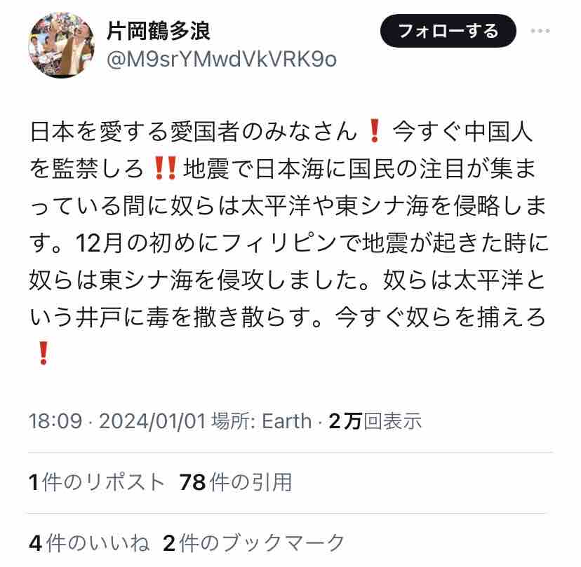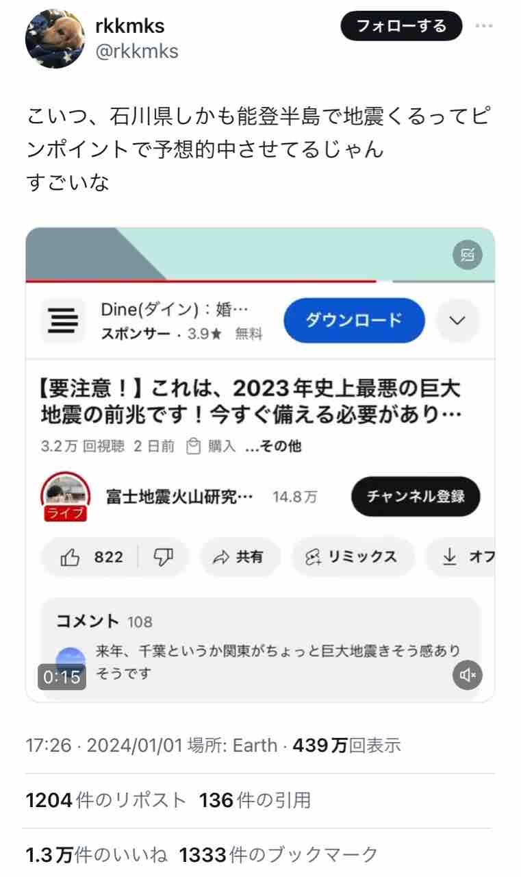 …毎日投稿してしょっちゅう「ココが危ない」「アッチが危険」とあちこちを「巨大地震の前兆」認定をしていた模様。