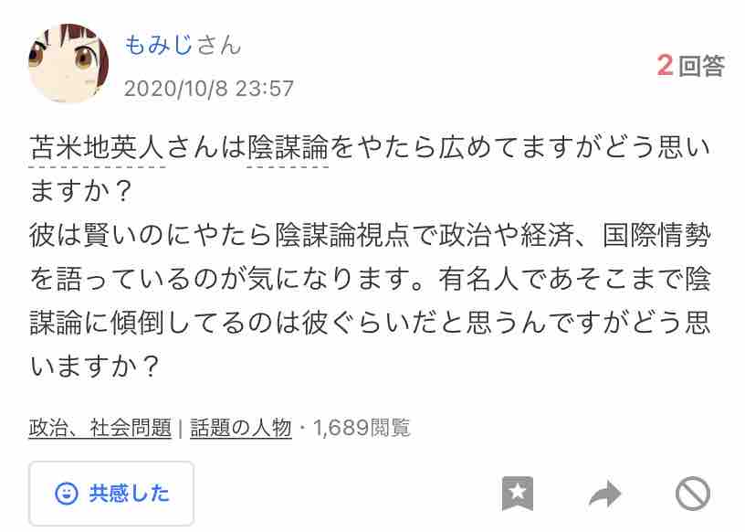 ちなみに「苫米地英人 陰謀論」でぐぐると2番目・3番目にヒットするのが↓こんな(1番目はAmazon)。