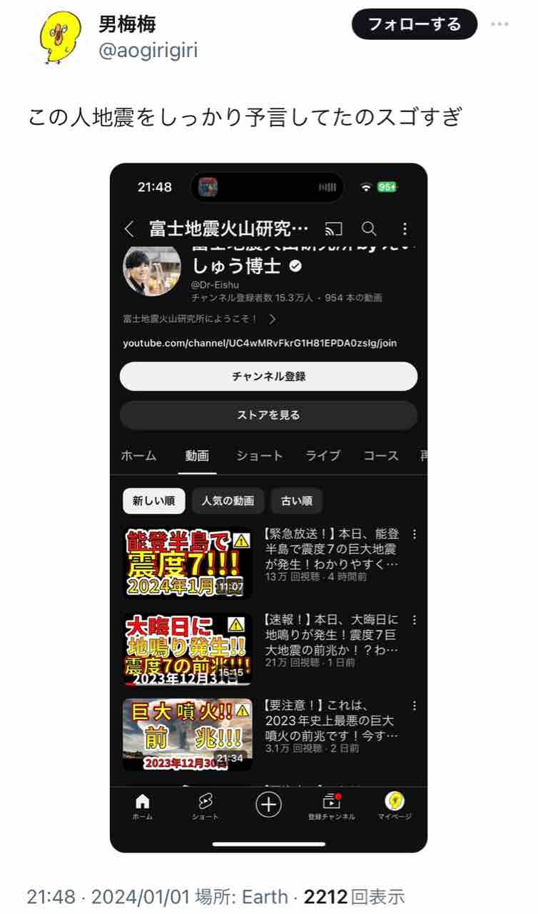 ↑取り上げられてるのは『富士地震火山研究所byえいしゅう博士』というYouTubeのチャンネル。