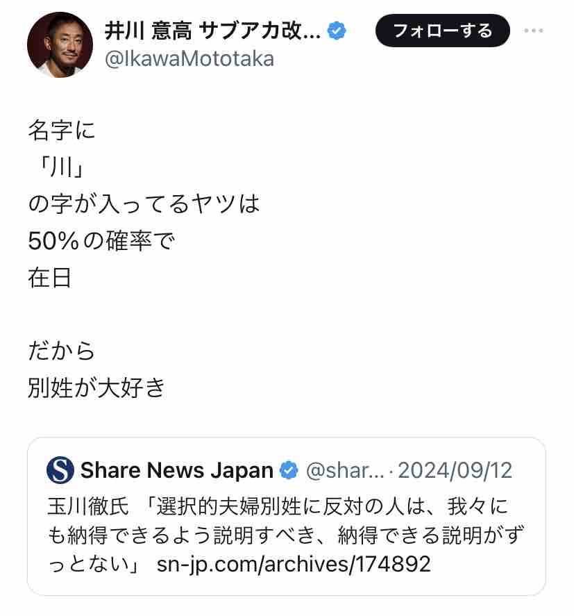 ネトウヨさんの主張はこういうのが多く、他に「苗字の漢字が左右対称なのは在日朝鮮人」という在日認定デマがありますが、コレも…