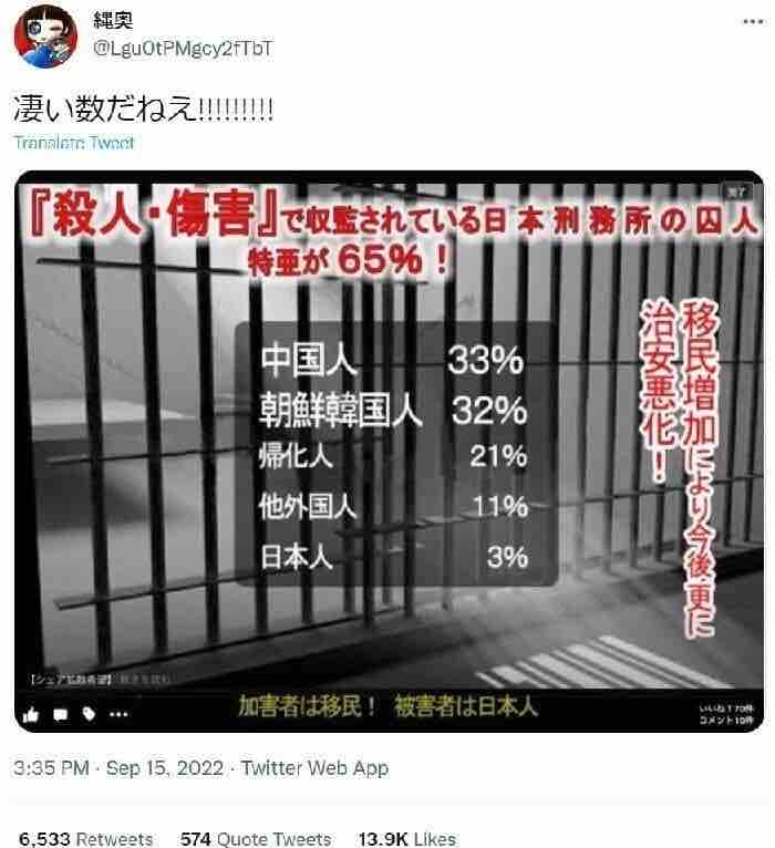 『刑務所の殺人・傷害の収容者は中国、韓国・朝鮮籍が65%?【ファクトチェック】』