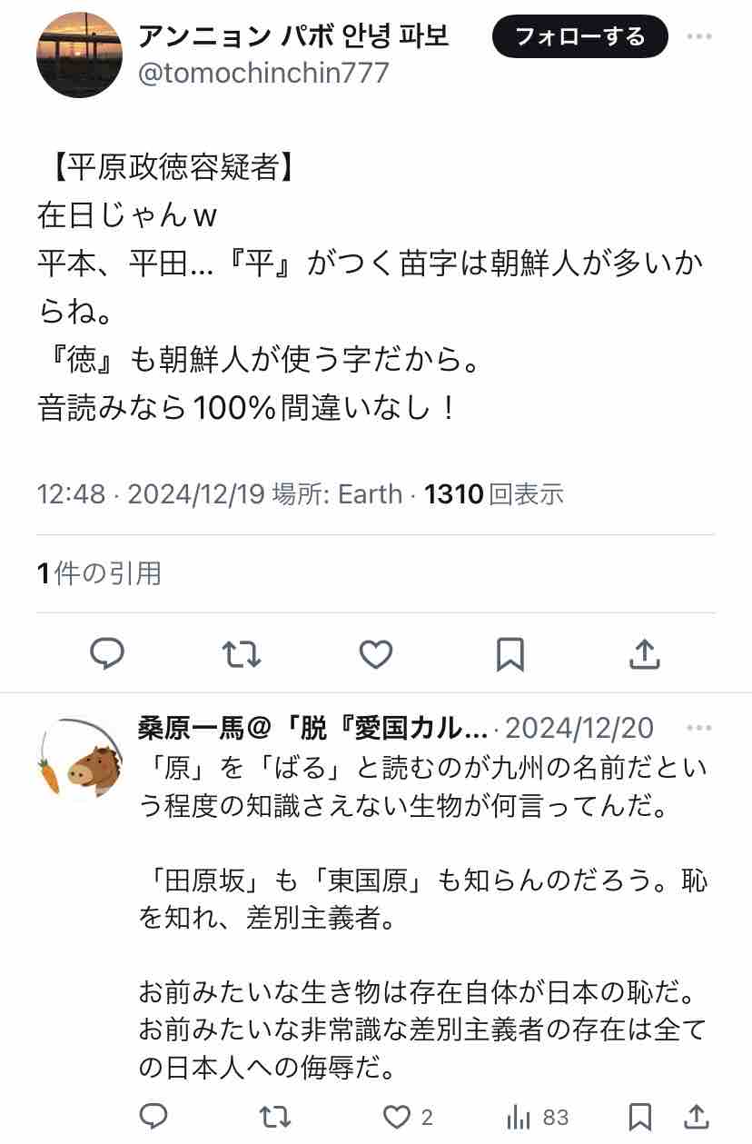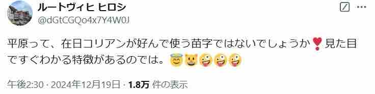 まぁ予想通り&いつも通り、ネトウヨさんが根拠レスに在日認定してただけの平常運転。