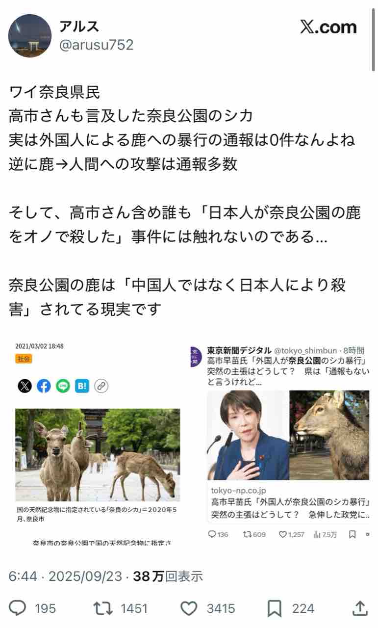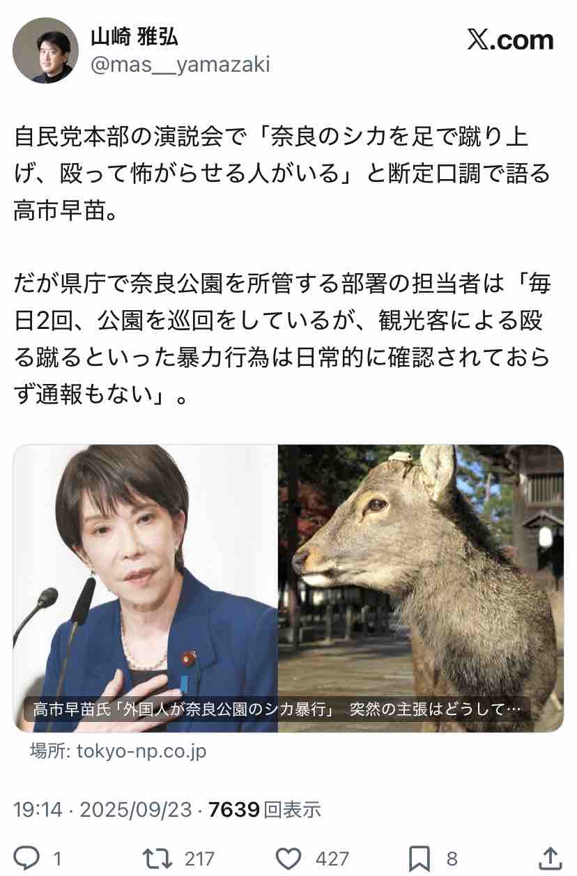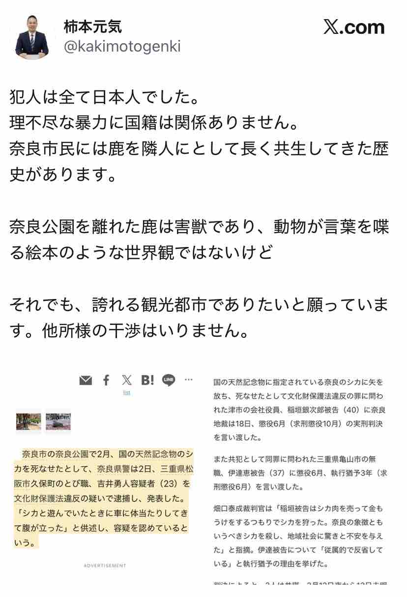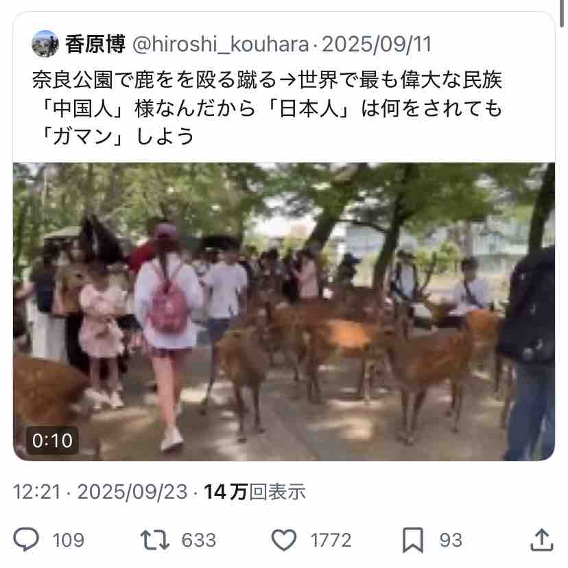 コレ動画回して「鹿さんに暴力を振るう衝撃シーン」とかテキトーなタイトル付けたらなんぼでも捏造できるな、と思いました。