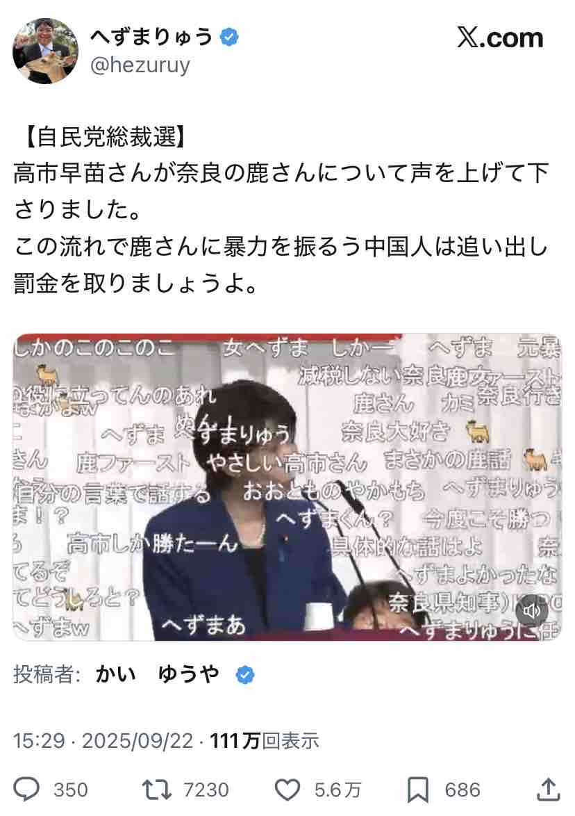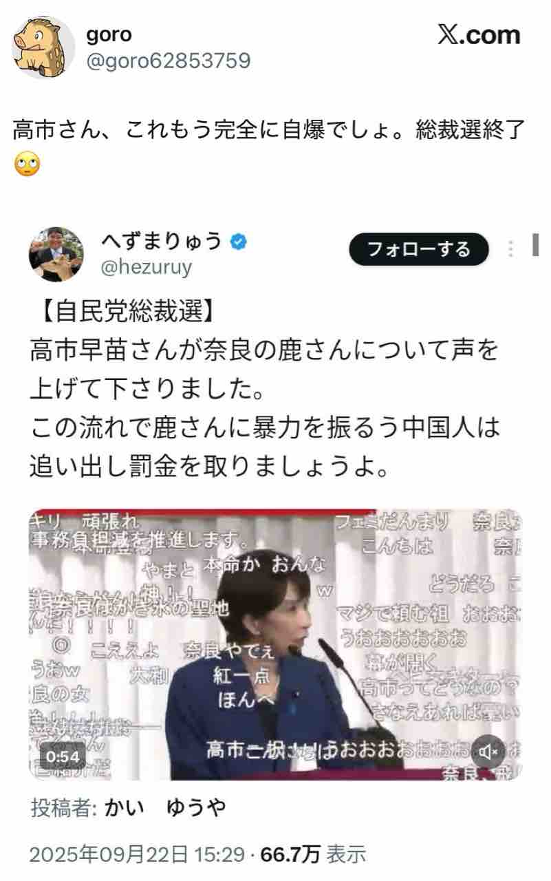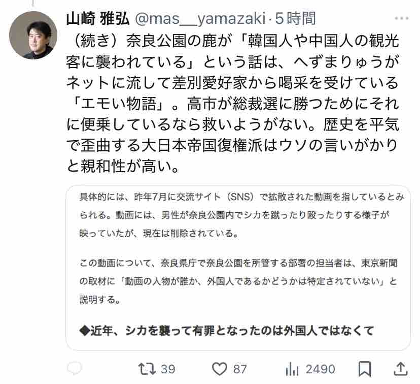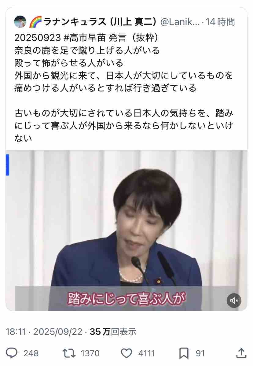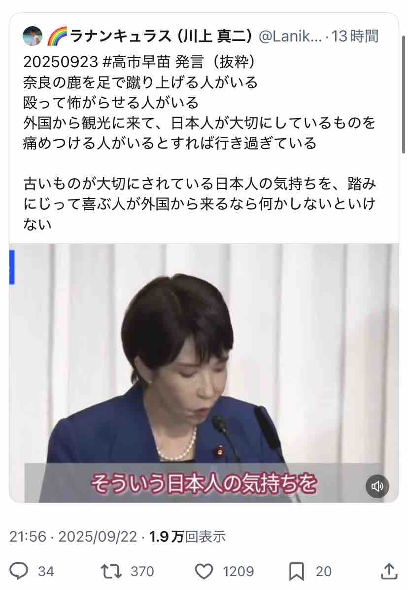 コレ動画回して「鹿さんに暴力を振るう衝撃シーン」とかテキトーなタイトル付けたらなんぼでも捏造できるな、と思いました。