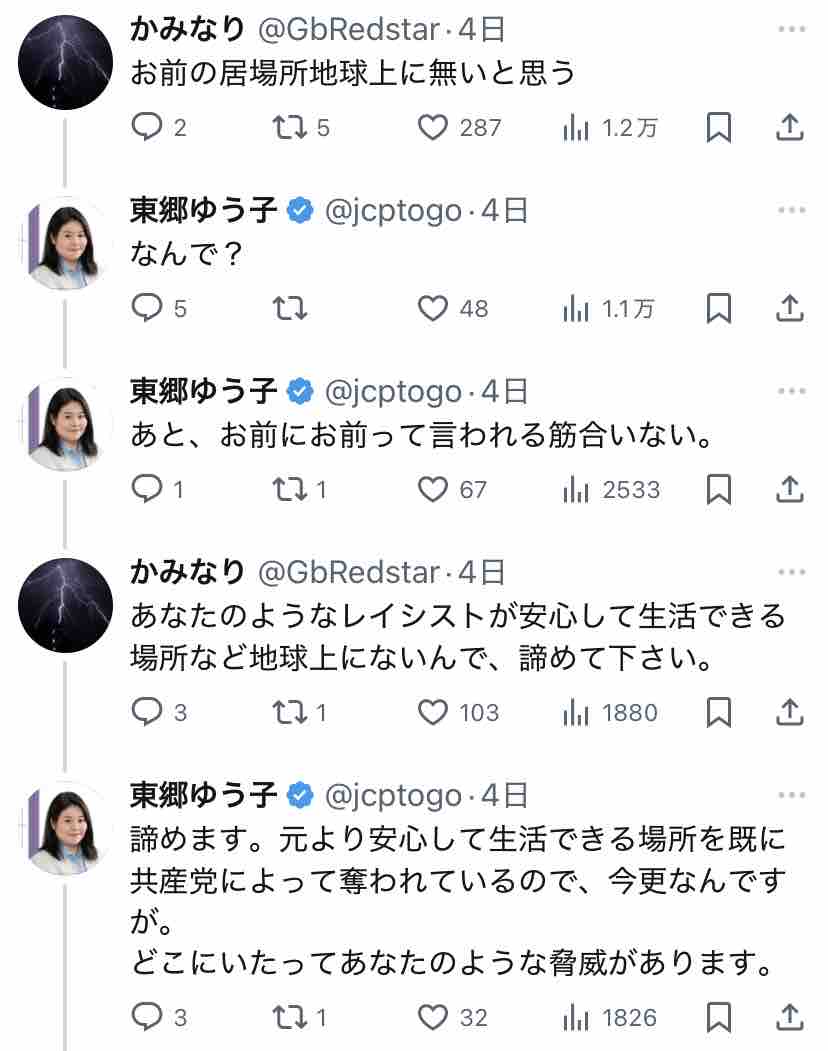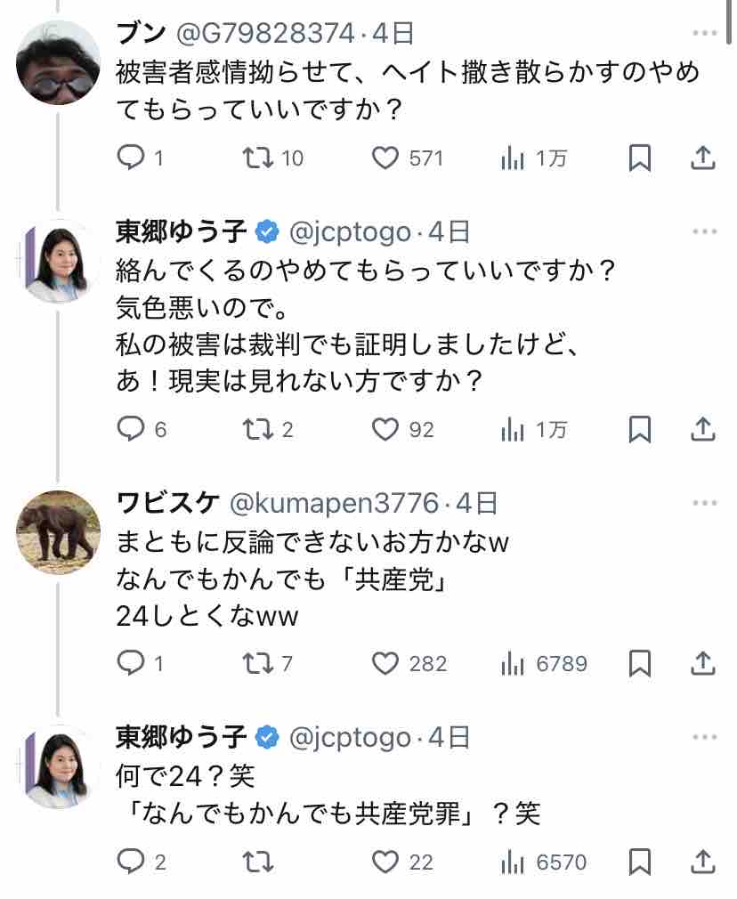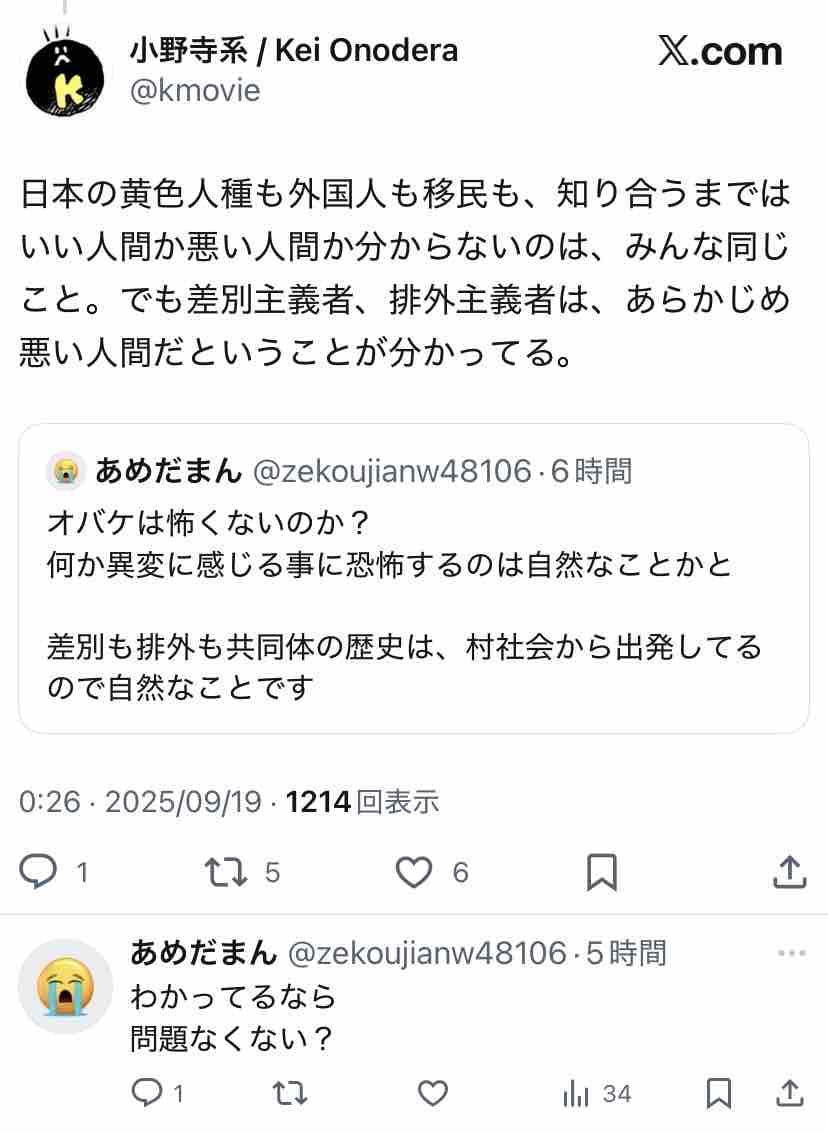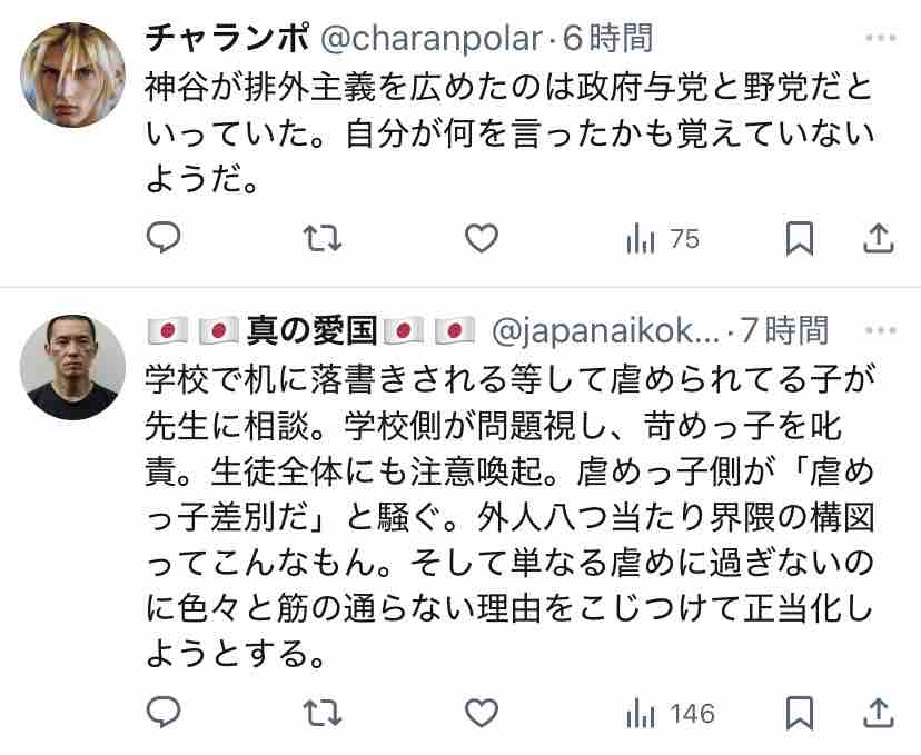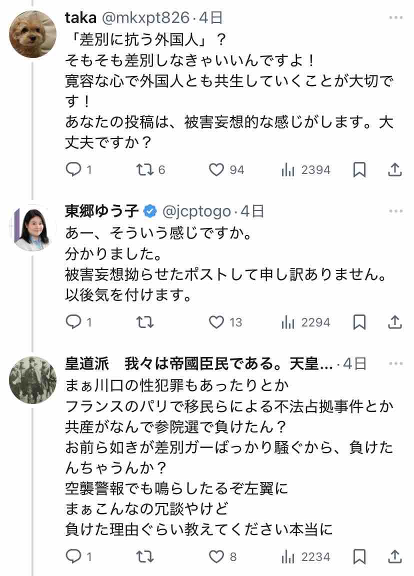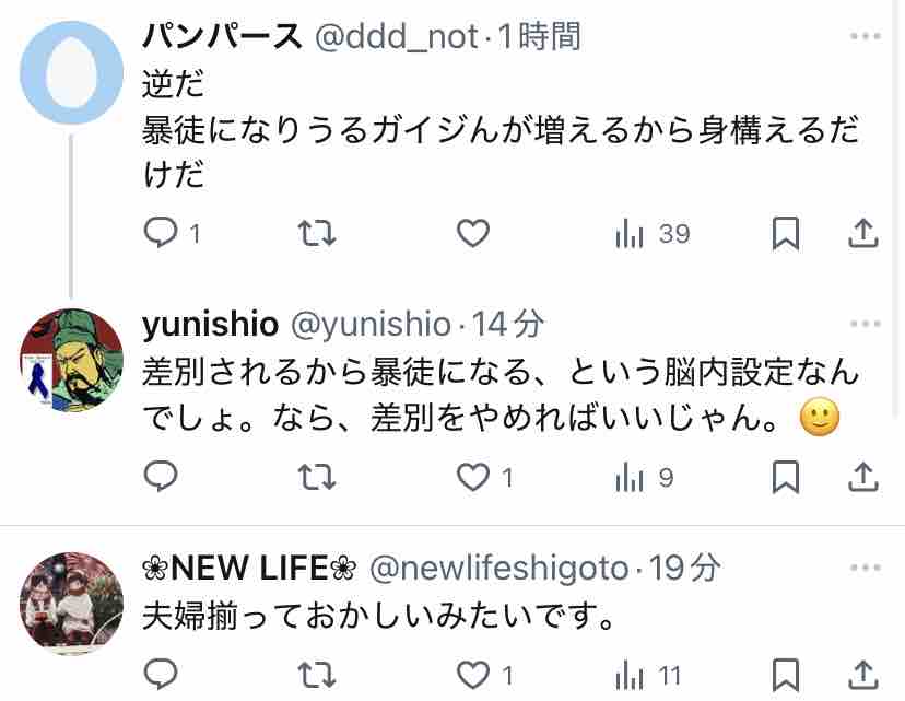 で、先程のポストへのリプライが↓こちら(表示順)。