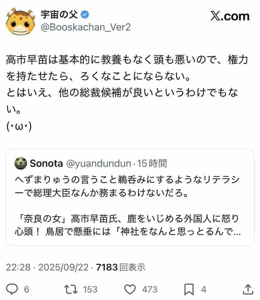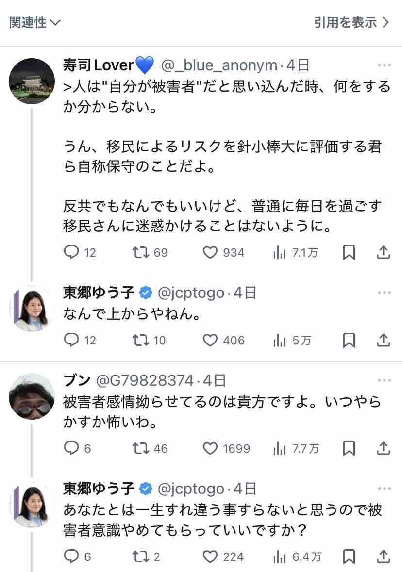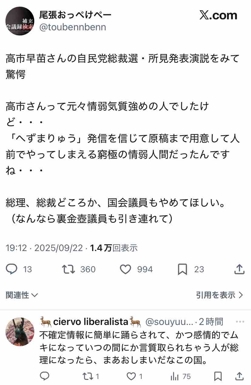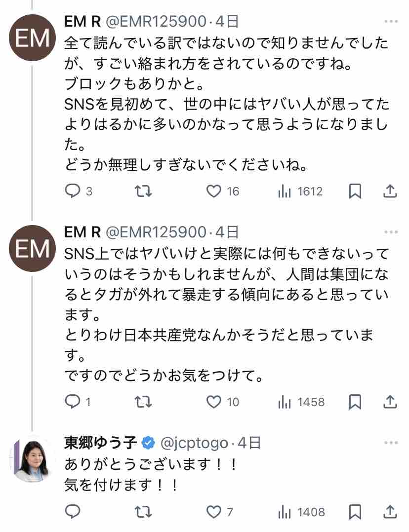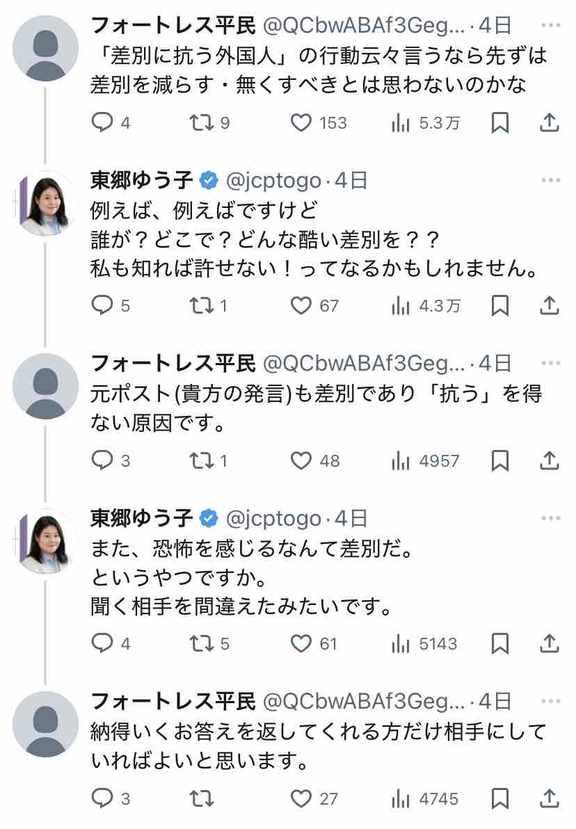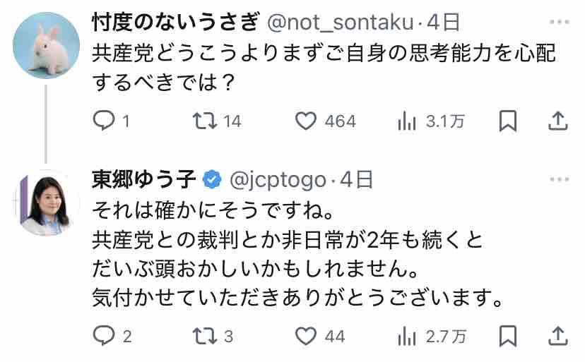 で、先程のポストへのリプライが↓こちら(表示順)。