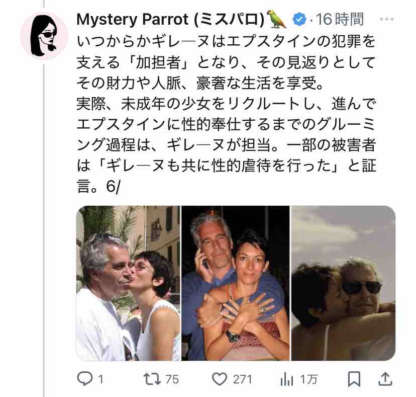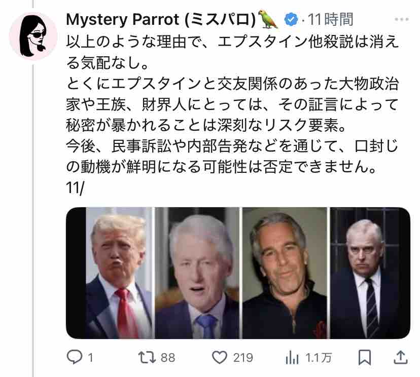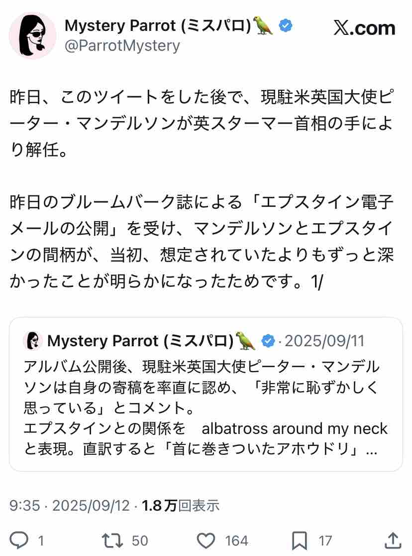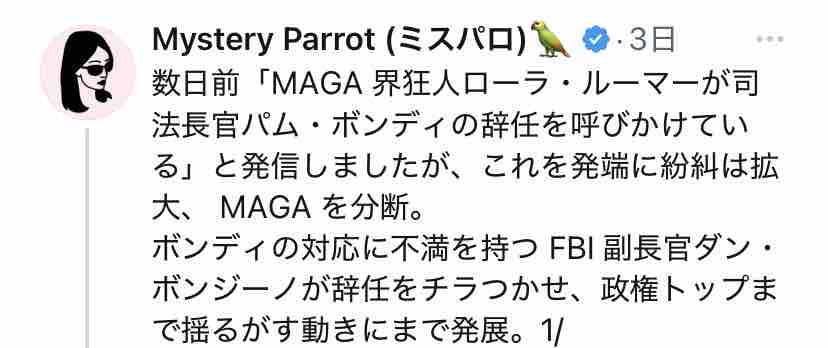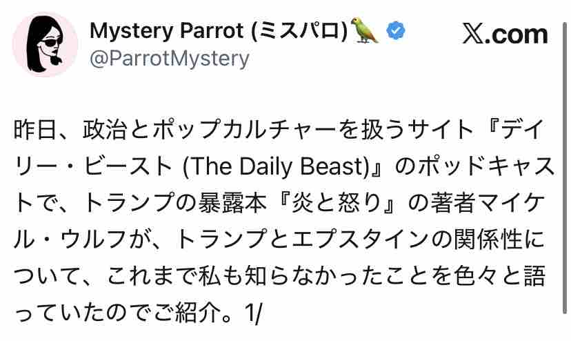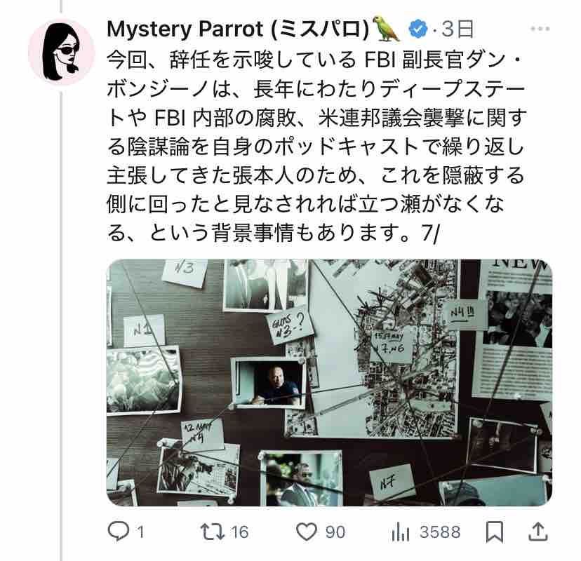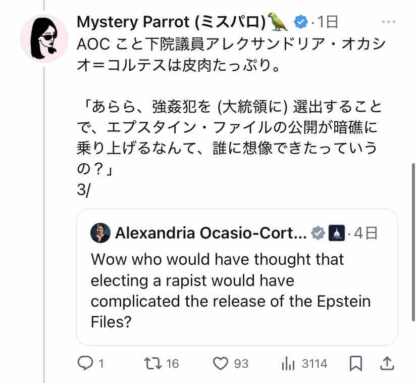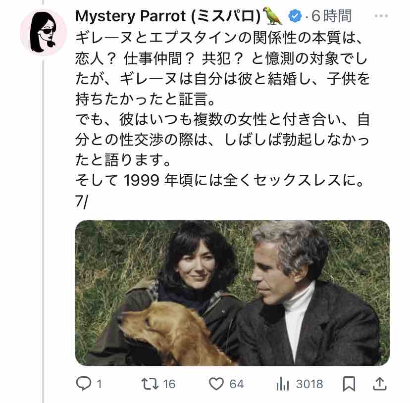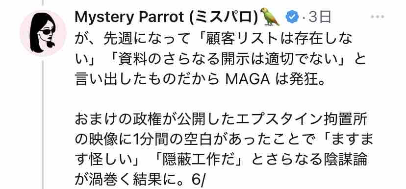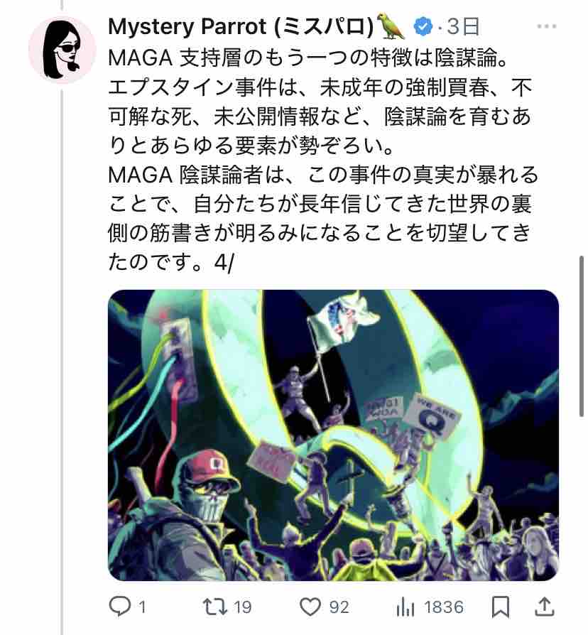 さて、当ブログがちょいちょい勝手にお世話になってる(つまり一方的に取り上げてる)X上のアカウント、「Mysterry Parrot(ミスパロ)🦜」…