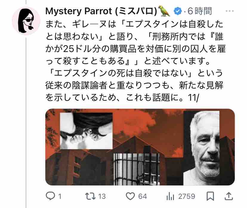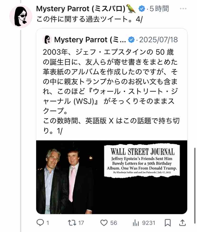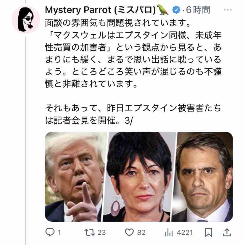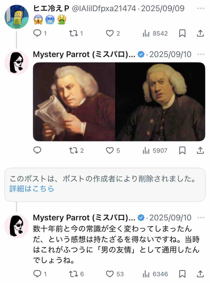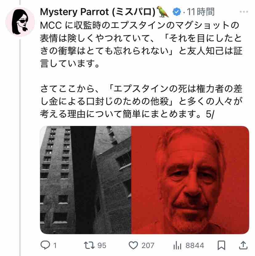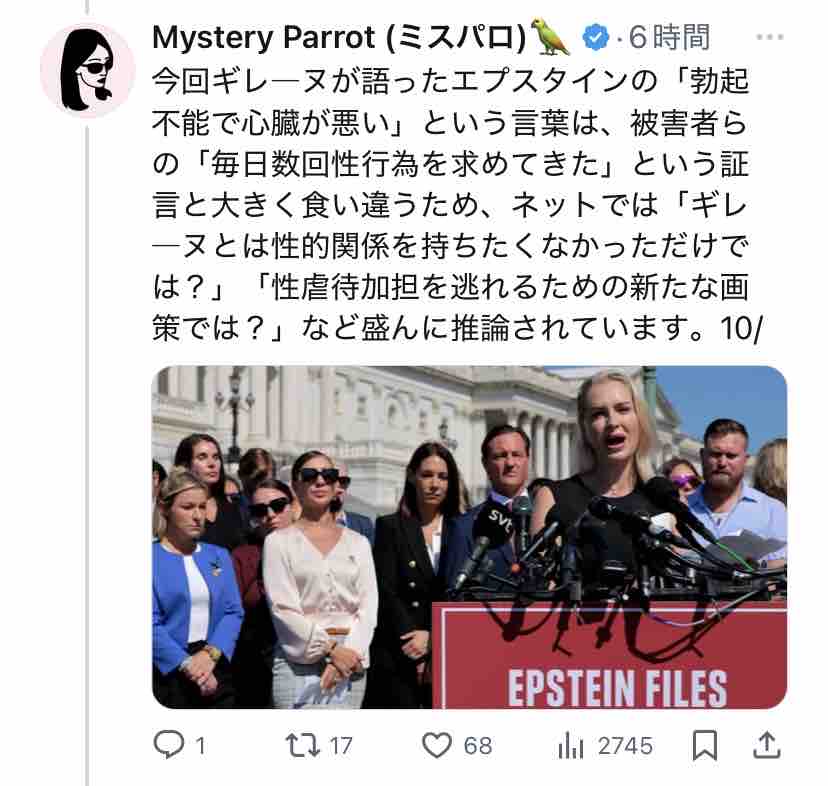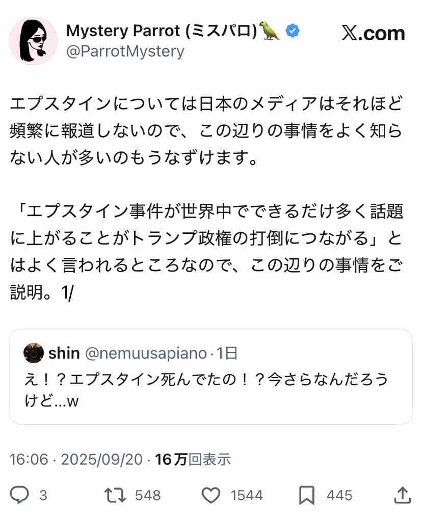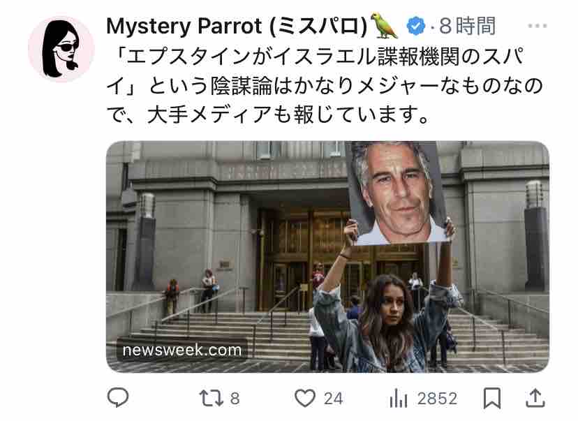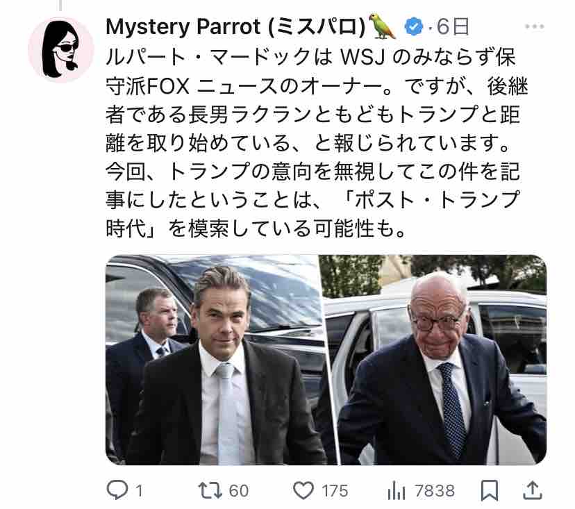 さて、当ブログがちょいちょい勝手にお世話になってる(つまり一方的に取り上げてる)X上のアカウント、「Mysterry Parrot(ミスパロ)🦜」…