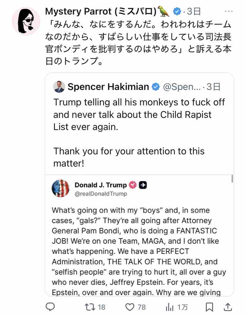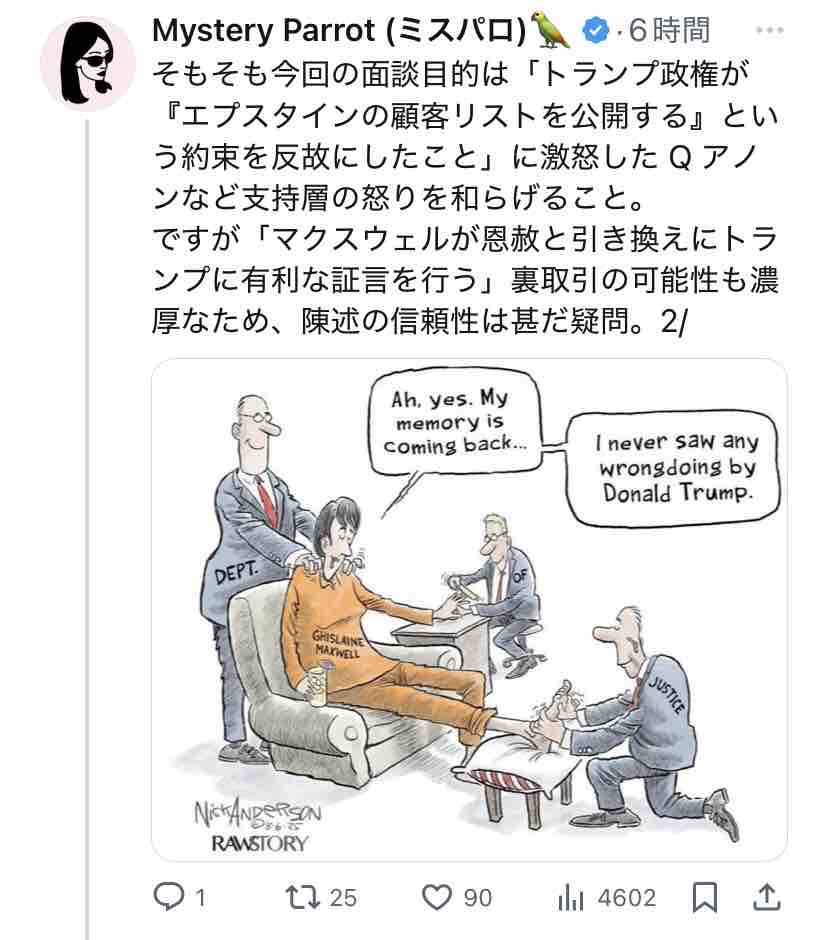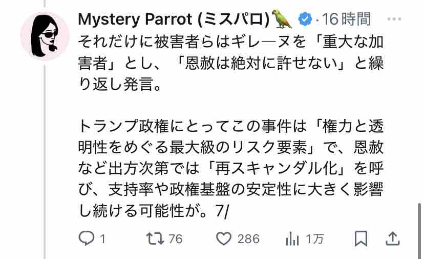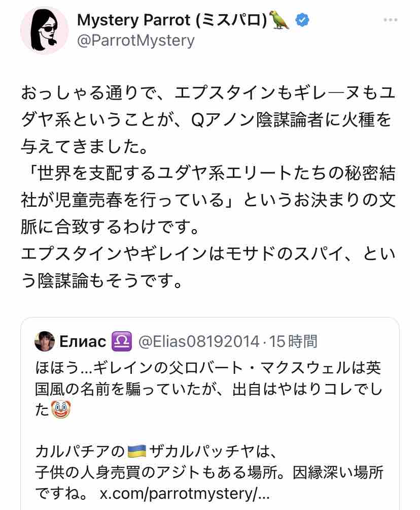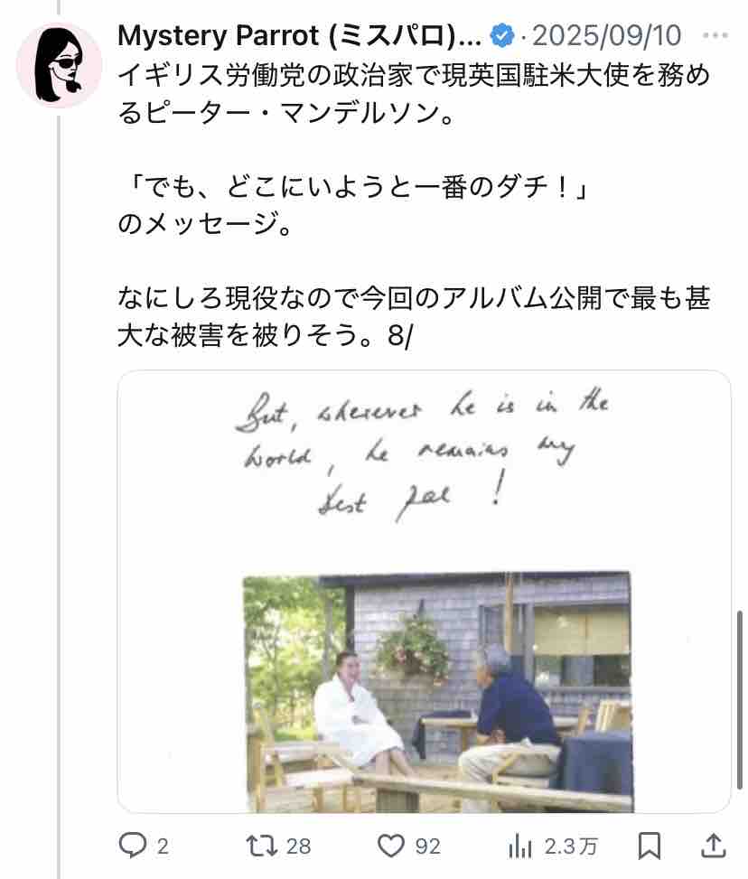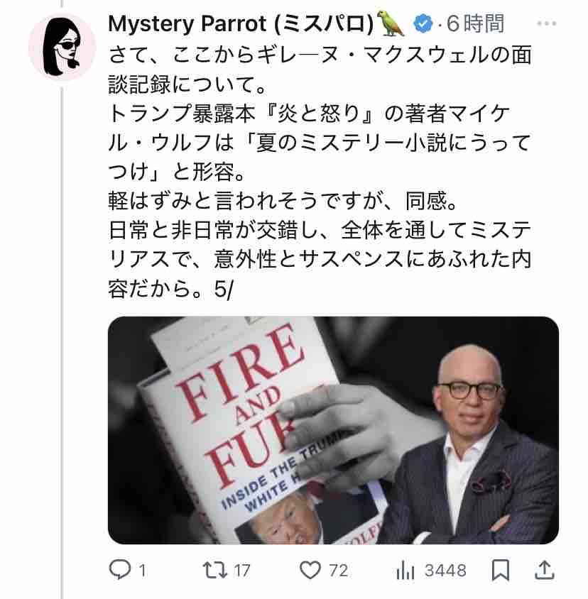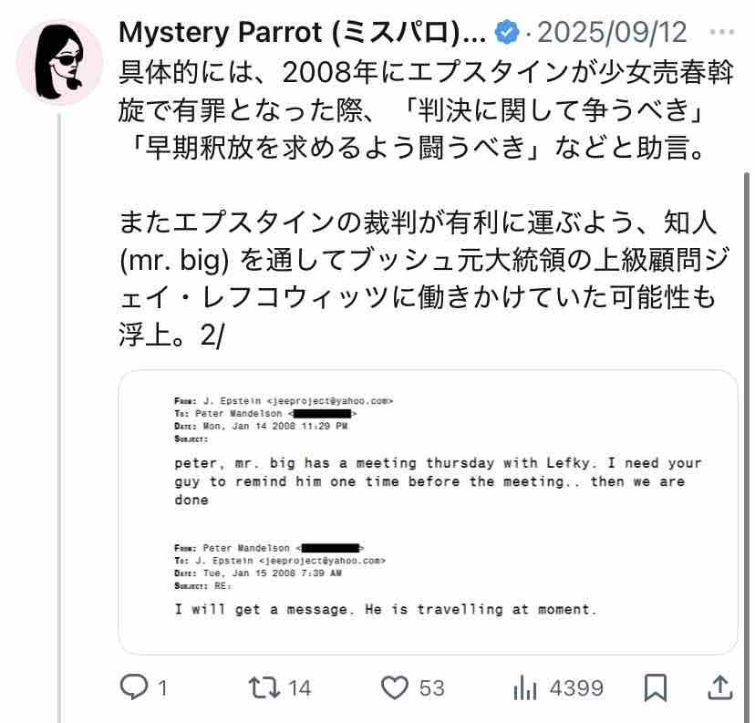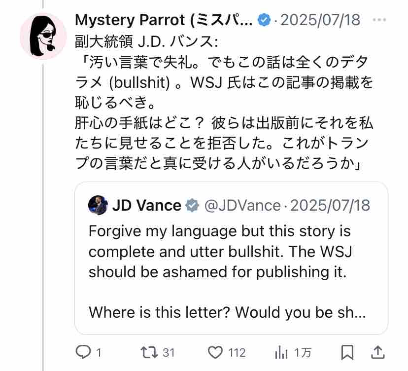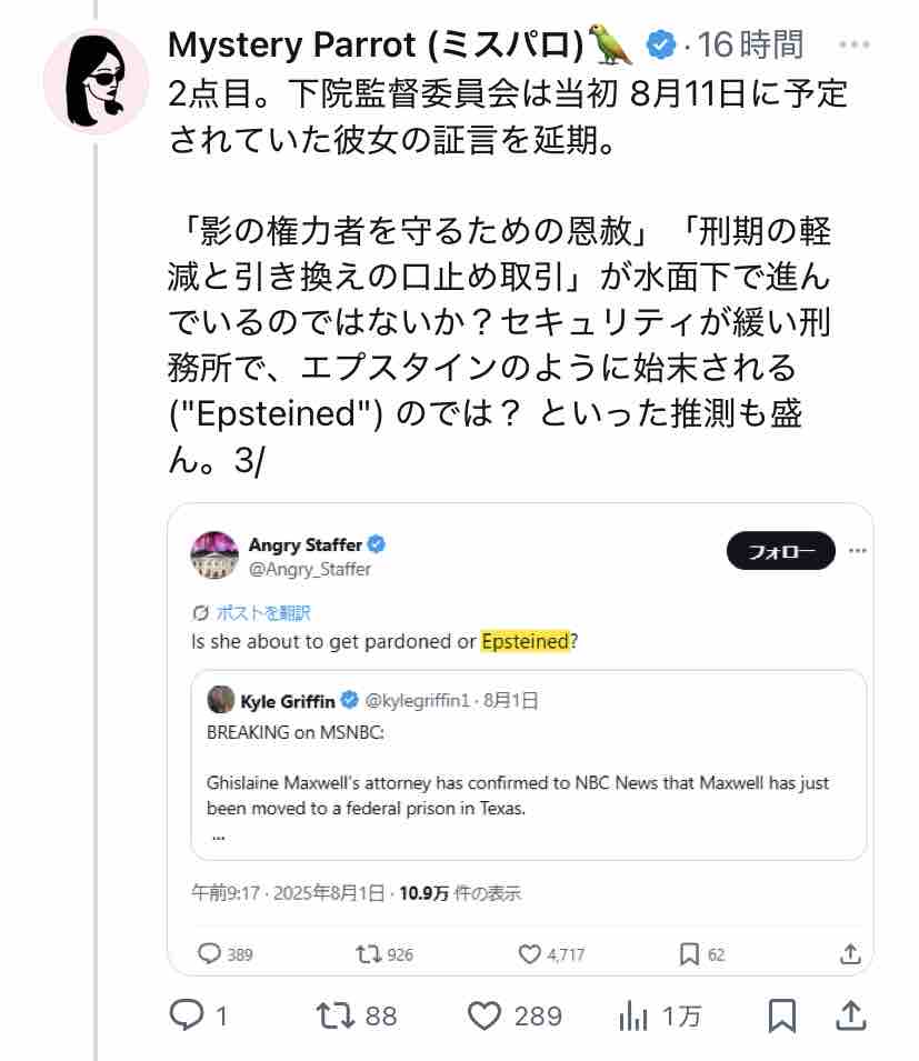 さて、当ブログがちょいちょい勝手にお世話になってる(つまり一方的に取り上げてる)X上のアカウント、「Mysterry Parrot(ミスパロ)🦜」…