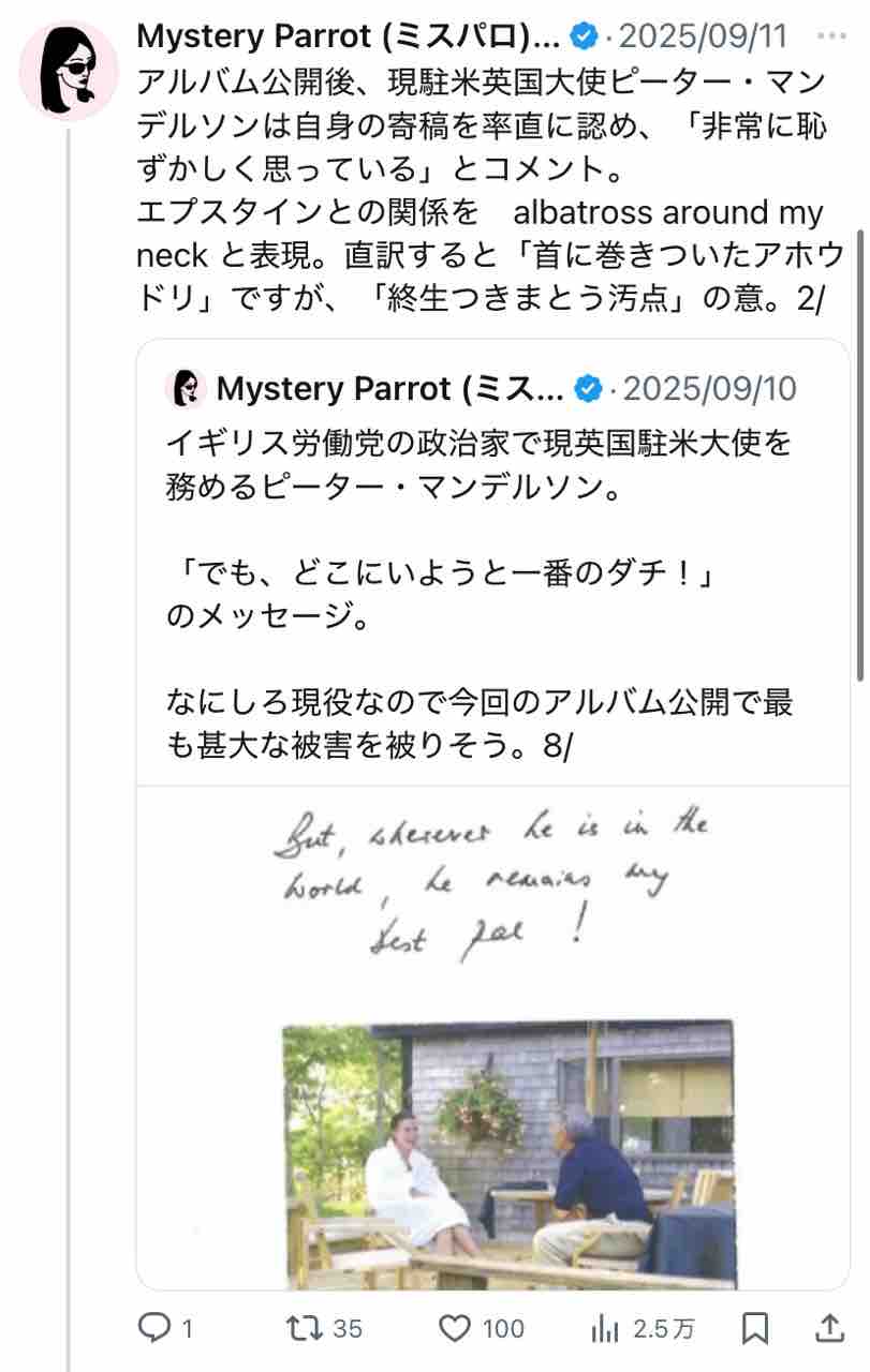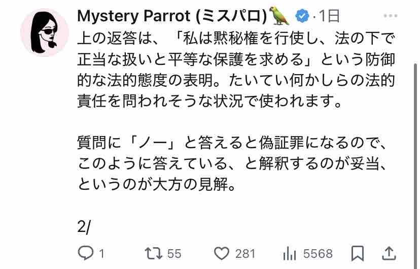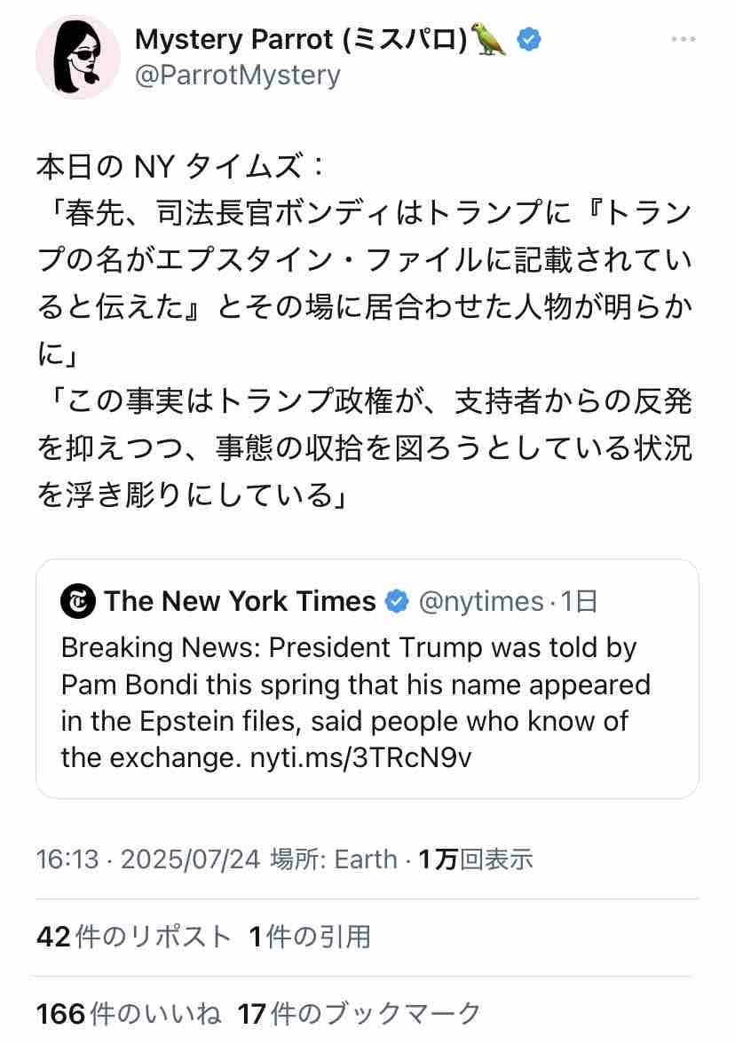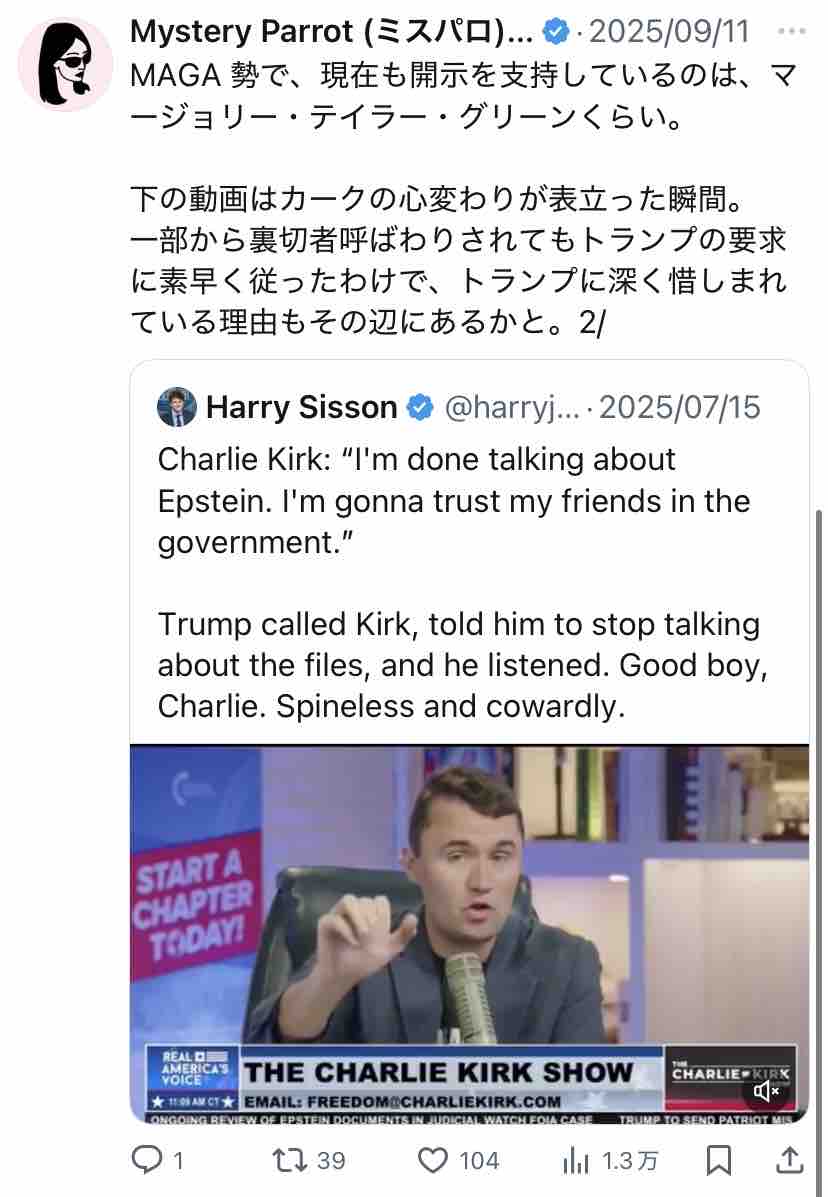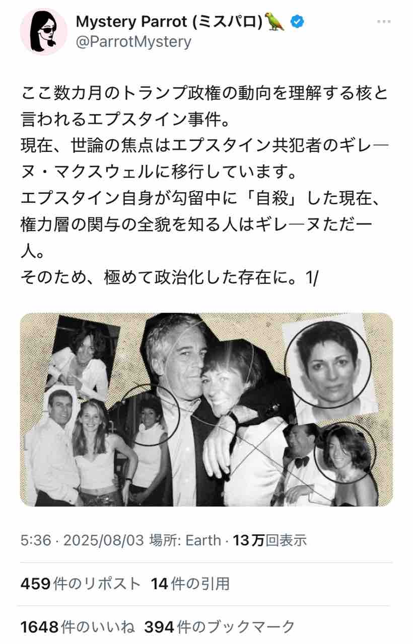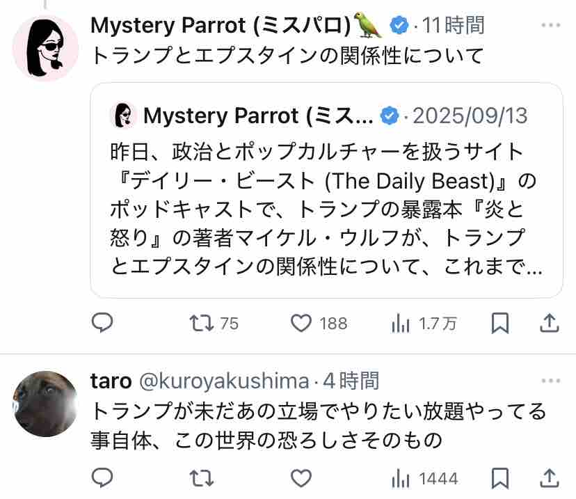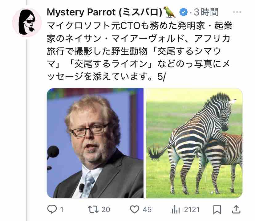 さて、当ブログがちょいちょい勝手にお世話になってる(つまり一方的に取り上げてる)X上のアカウント、「Mysterry Parrot(ミスパロ)🦜」…