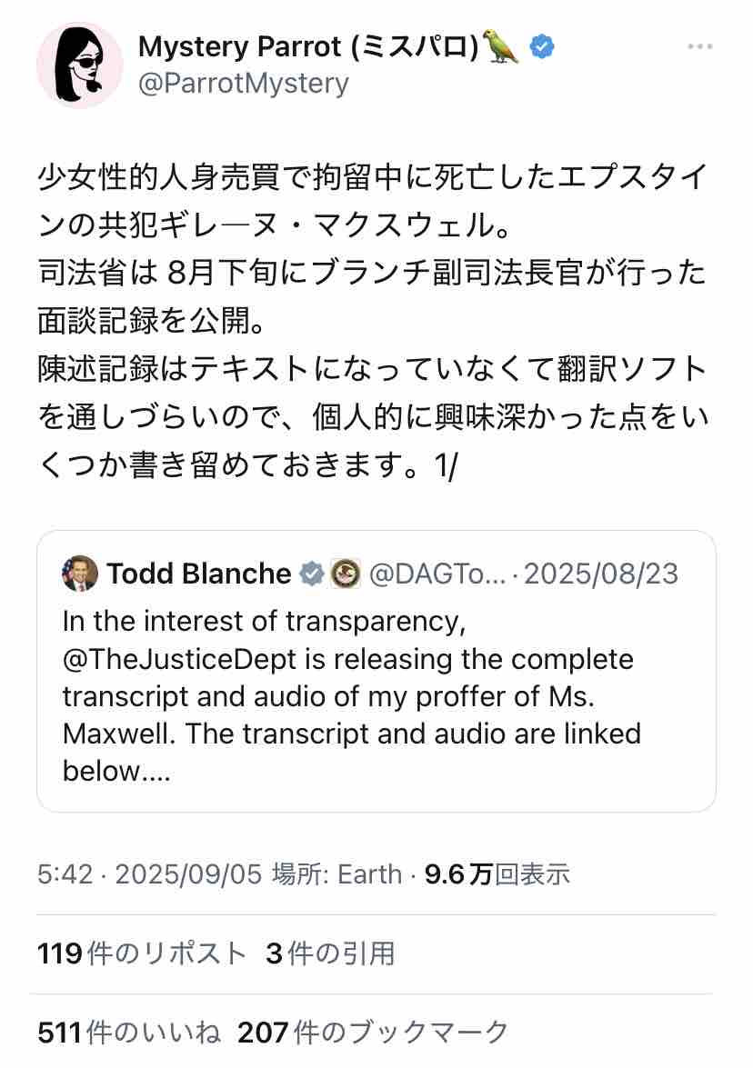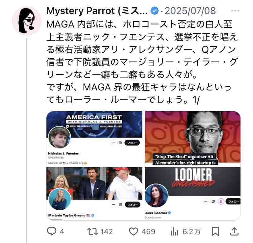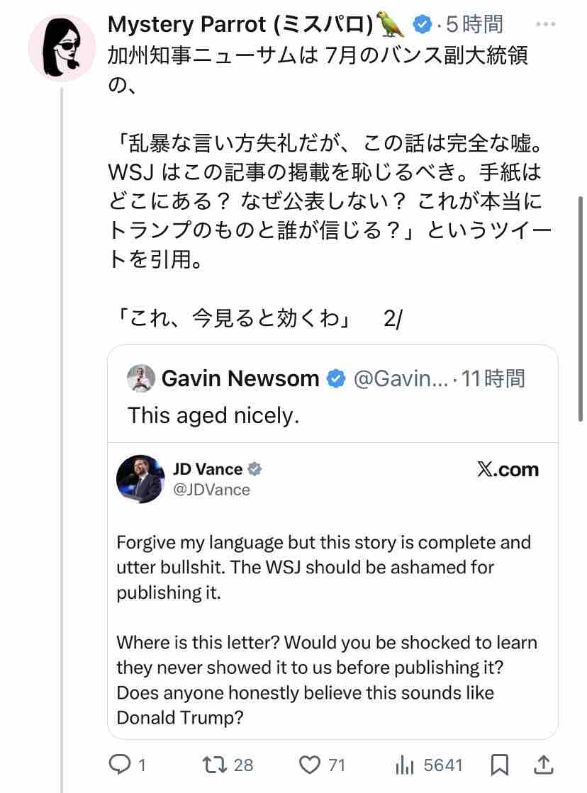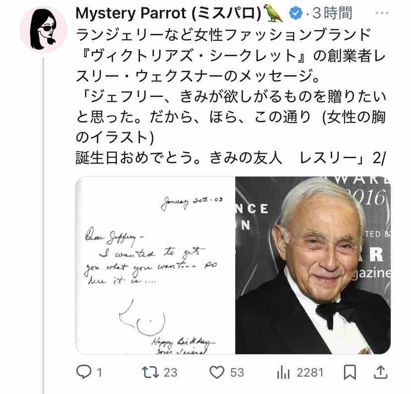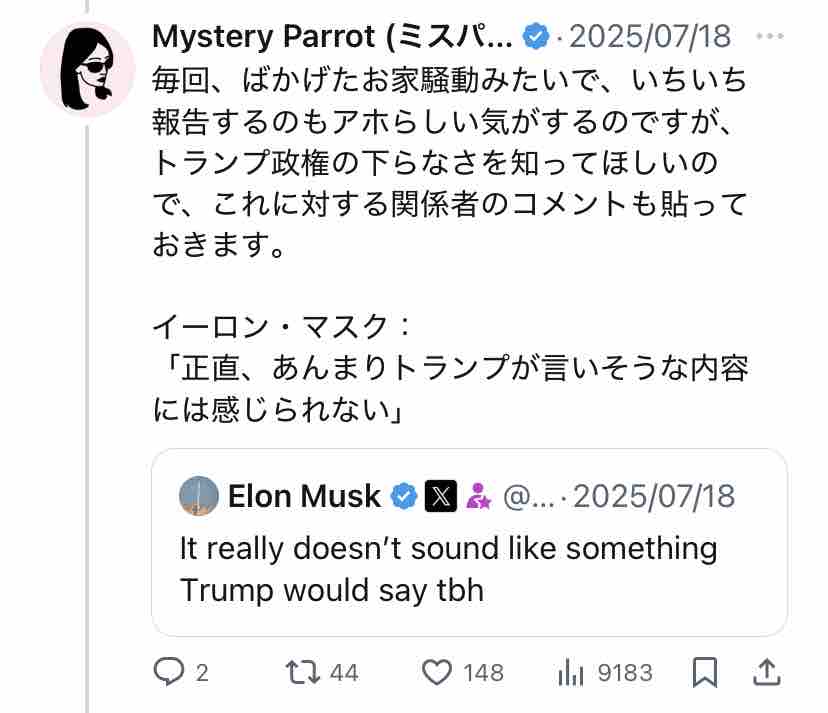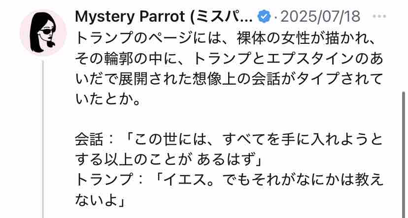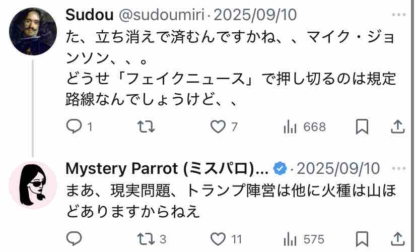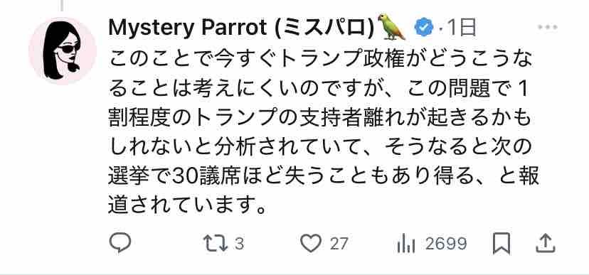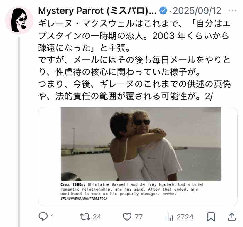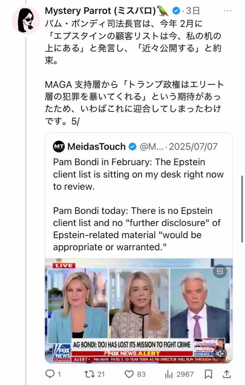 さて、当ブログがちょいちょい勝手にお世話になってる(つまり一方的に取り上げてる)X上のアカウント、「Mysterry Parrot(ミスパロ)🦜」…