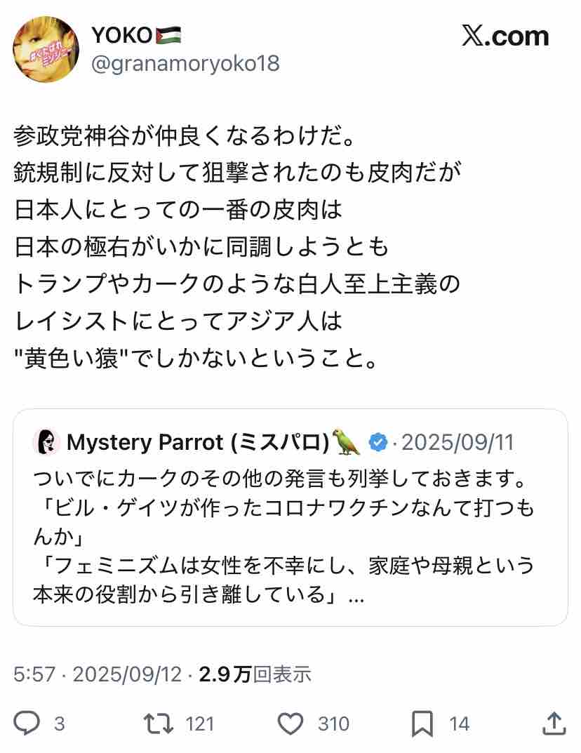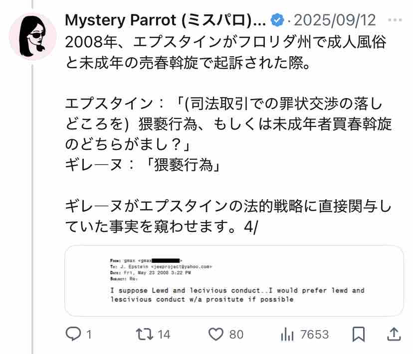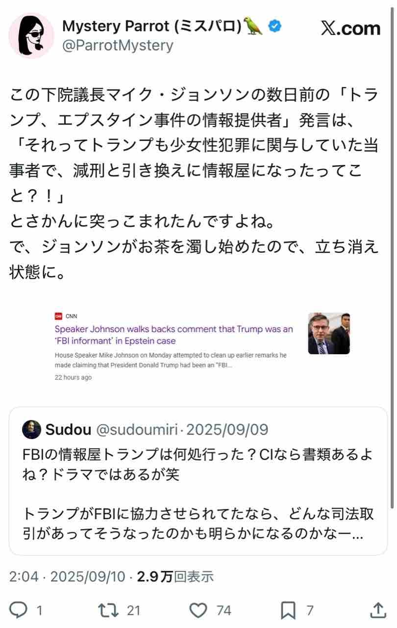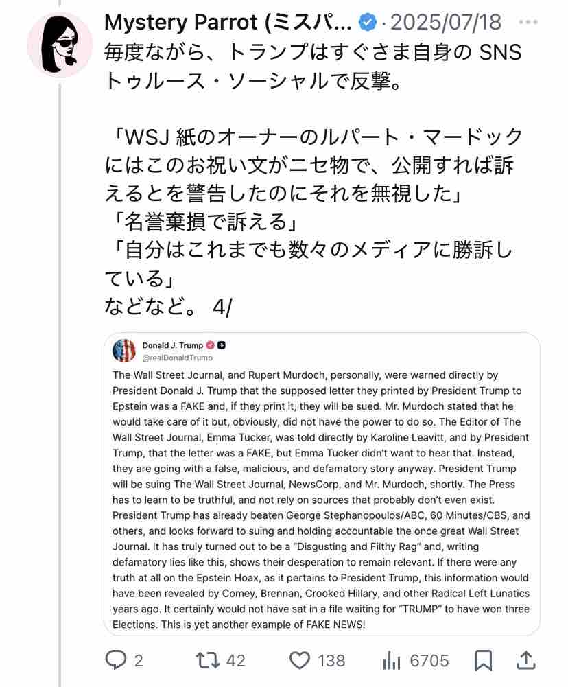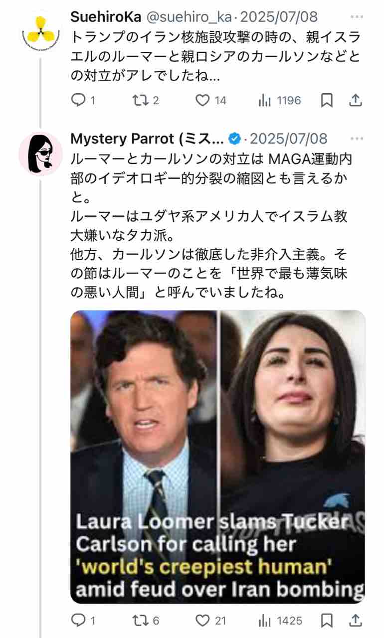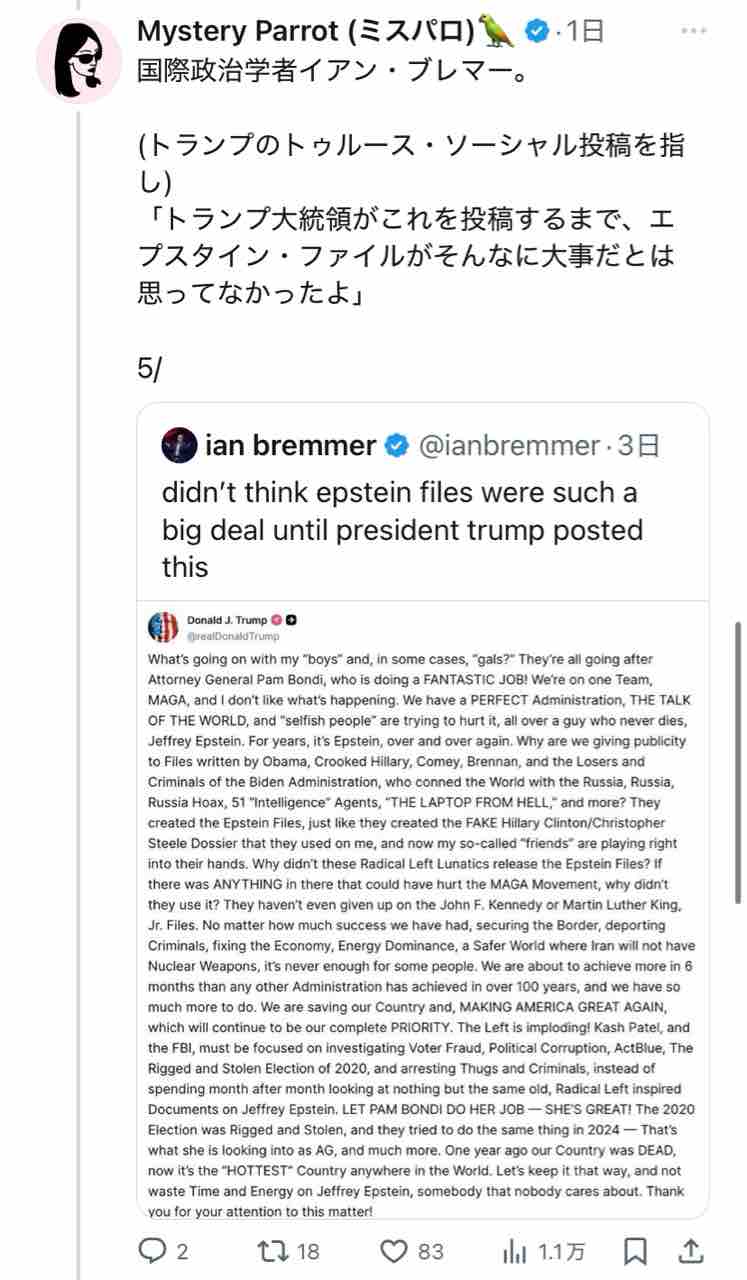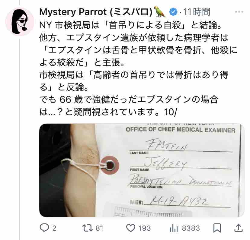 さて、当ブログがちょいちょい勝手にお世話になってる(つまり一方的に取り上げてる)X上のアカウント、「Mysterry Parrot(ミスパロ)🦜」…