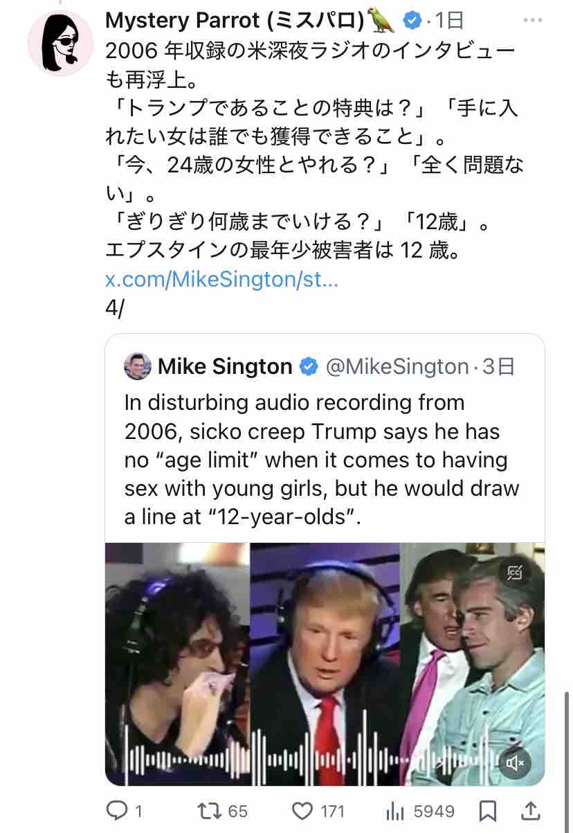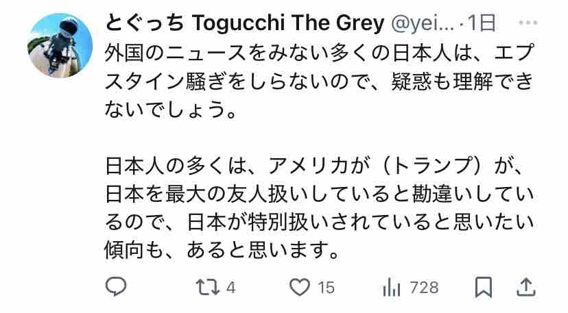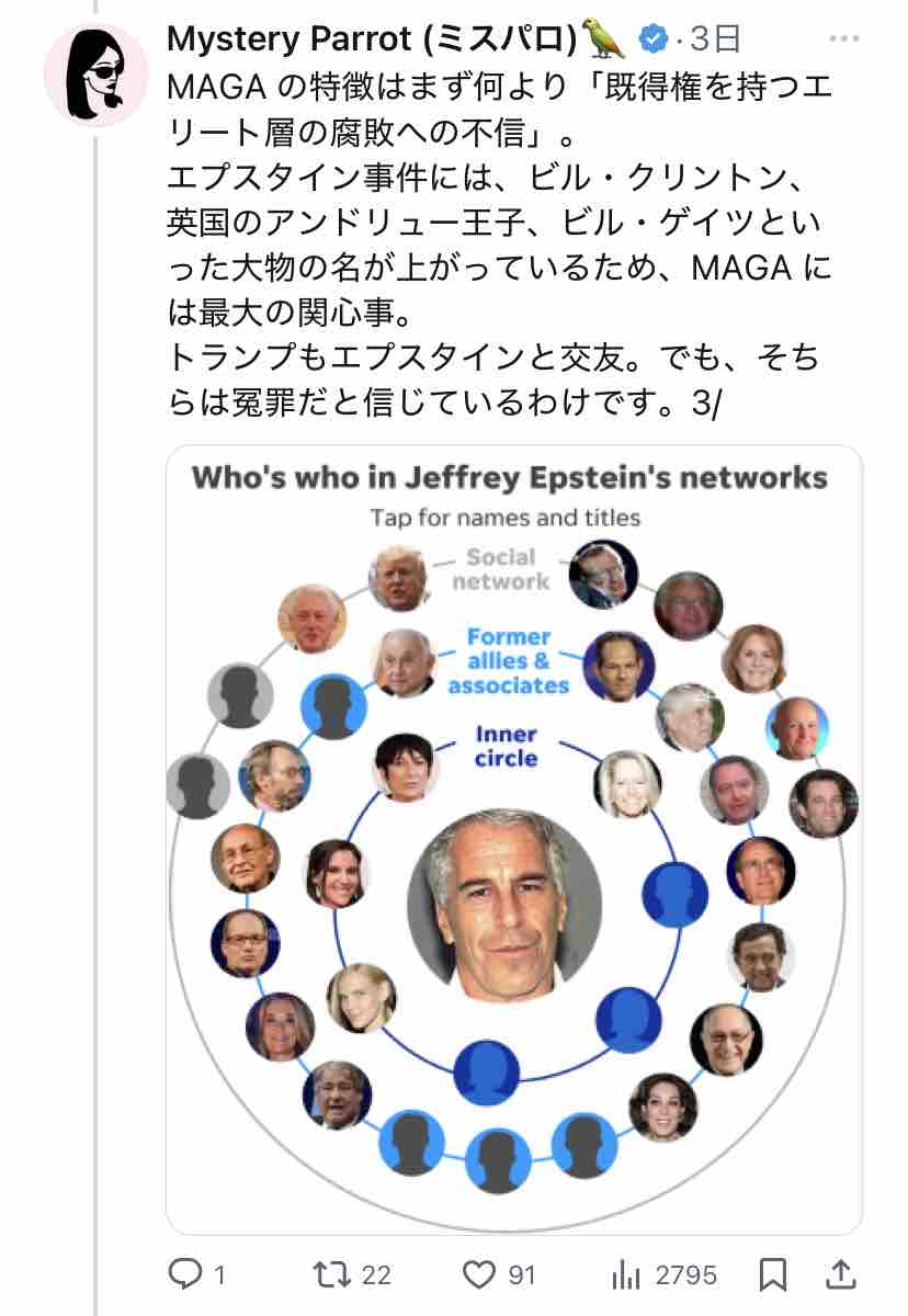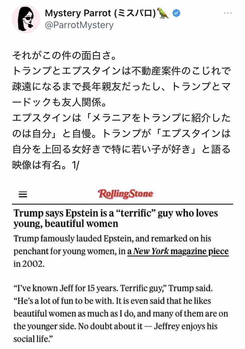 なのに日本のメディアはあまりエプスタイン絡みの報道をしないのですが…