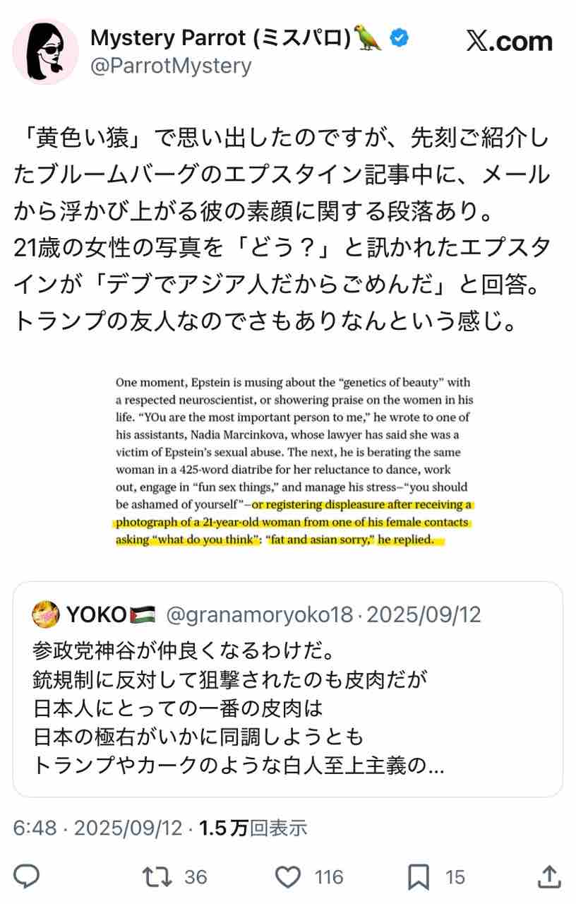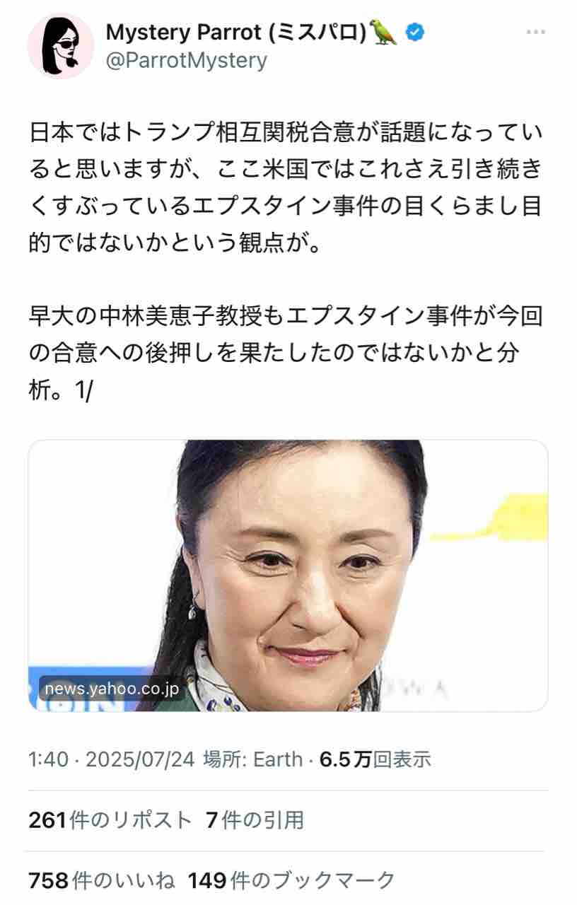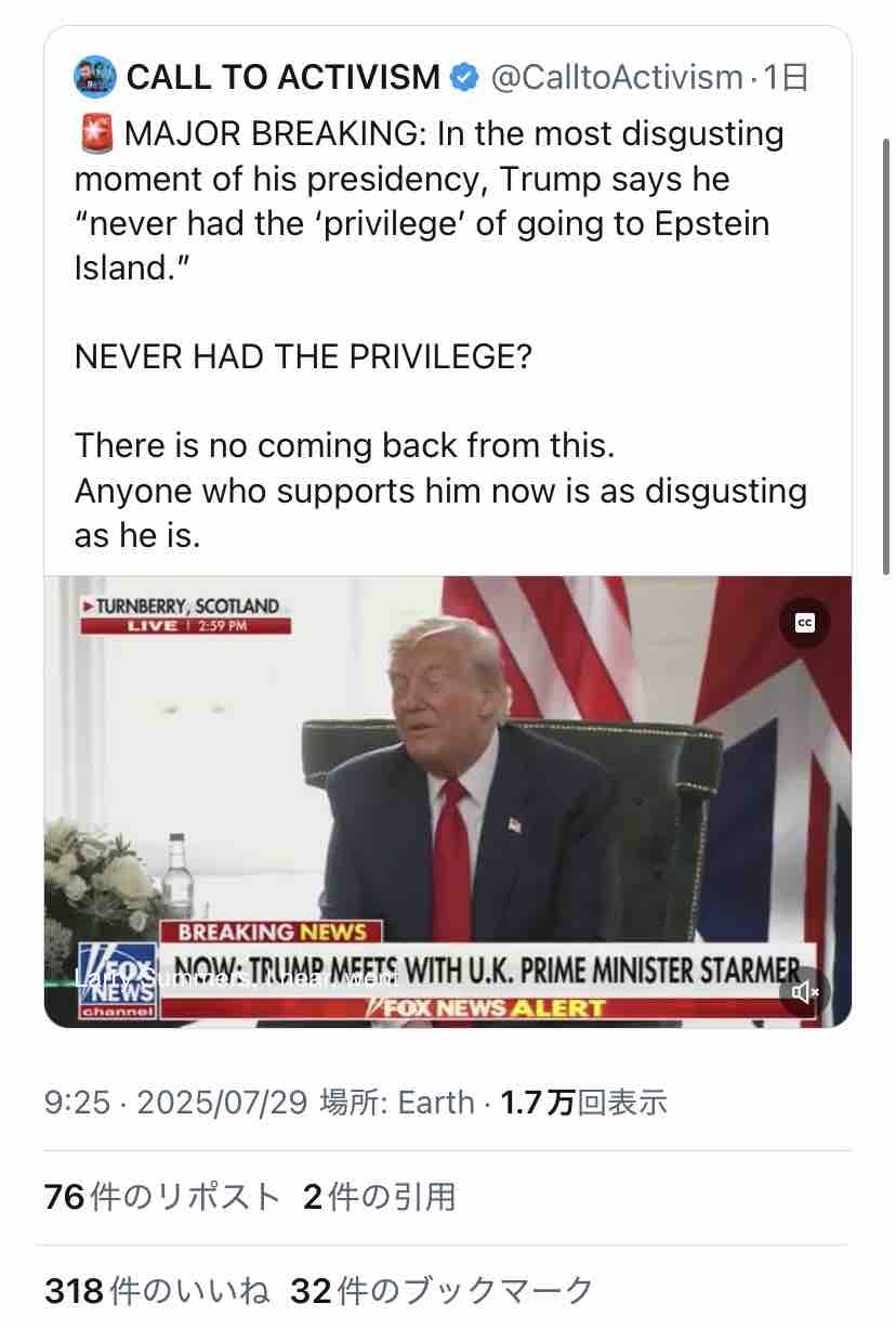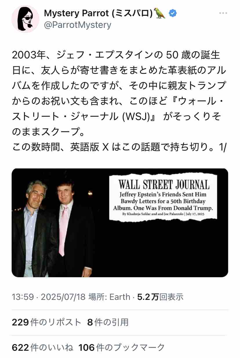 なのに日本のメディアはあまりエプスタイン絡みの報道をしないのですが…