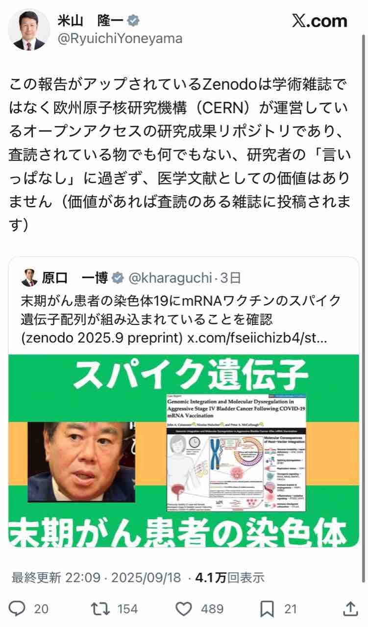 と反論。原口氏の発言は賛否両論を読んだ。また、「レプリコンワクチン」と呼ばれる次世代型の新型コロナワクチンについて原口氏がSNSの動画で、