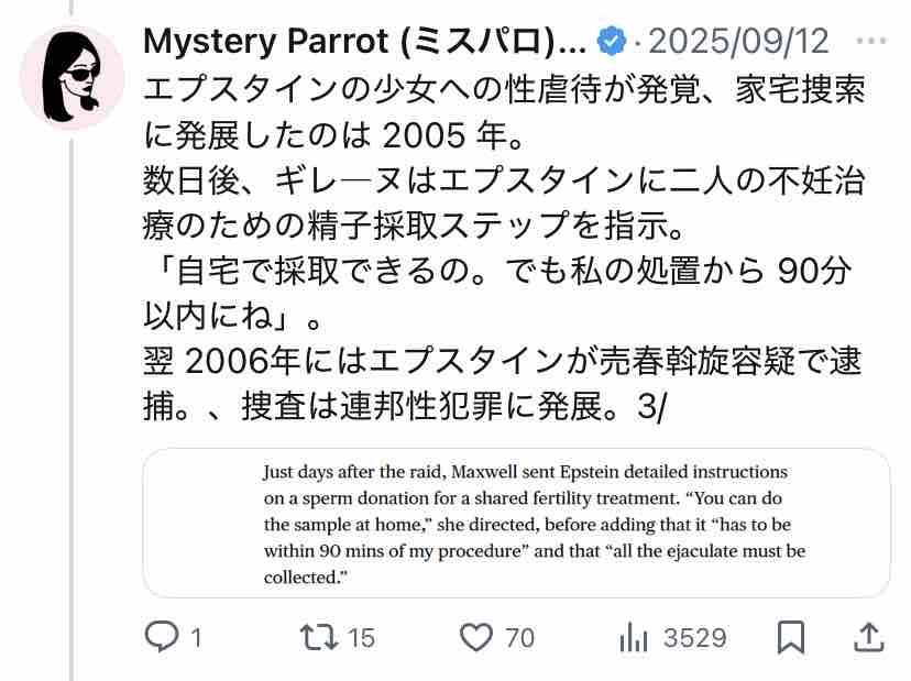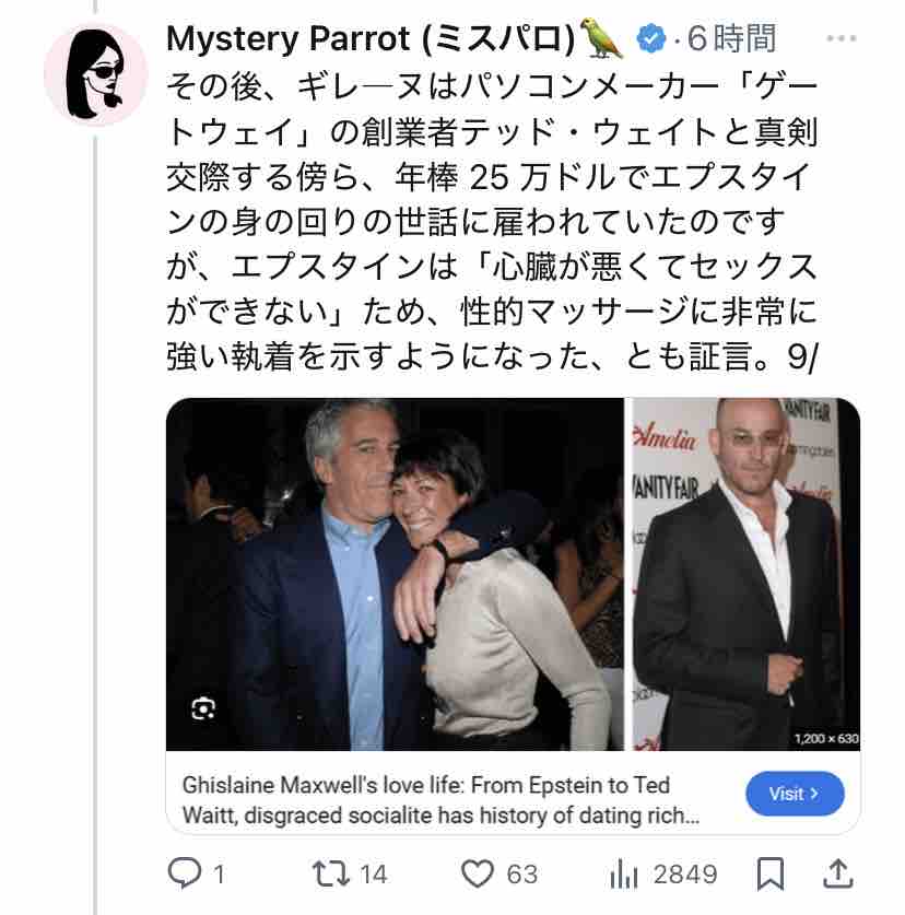 この人、エプスタイン事件が再び注目を浴びたこの3ヶ月ほどの間に、膨大な量の最新情報をポストしてはるんですよ。