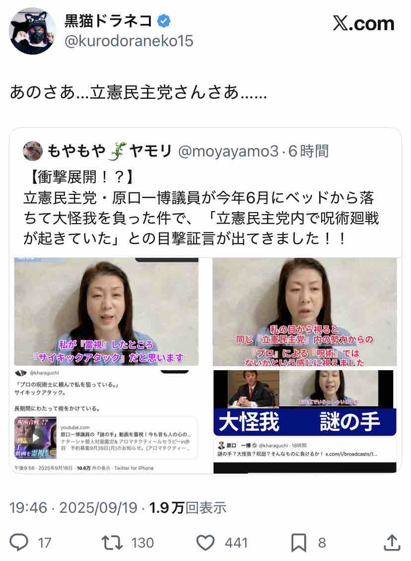 など陰謀論も一部で巻き起こったが、翌日の17日に原口氏が、
