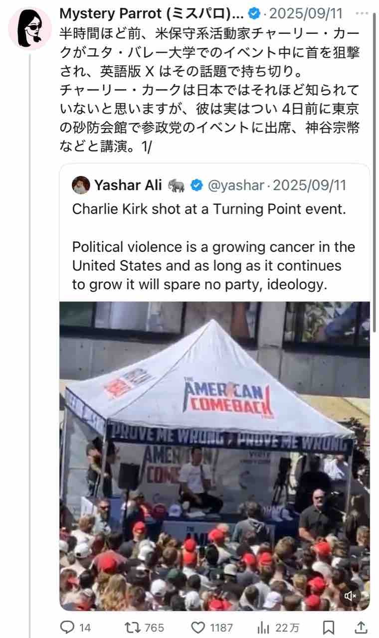 今回は以前に準備していたものの、チャーリー・カーク射殺事件でそれどころではなくなってうっちゃらかしてたネタでーす。