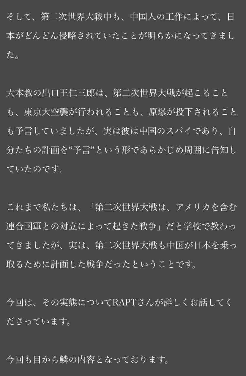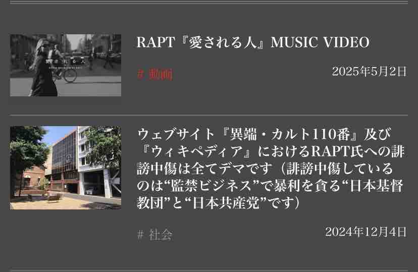 というか『摂理』は統一教会の分派みたいなモノなので、RAPTは言わば「統一教会の分派の分派」やないか!