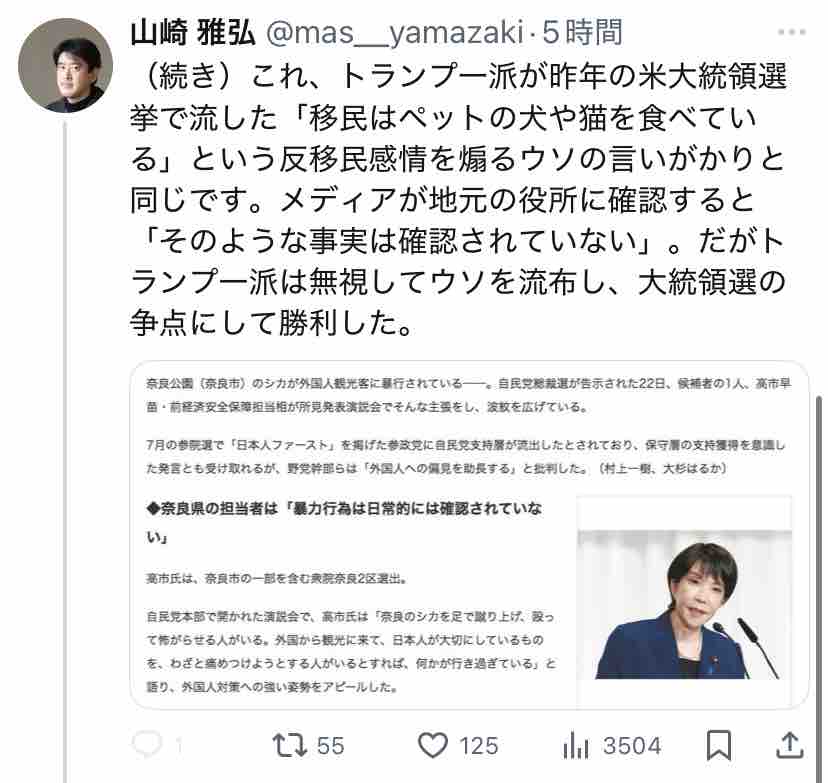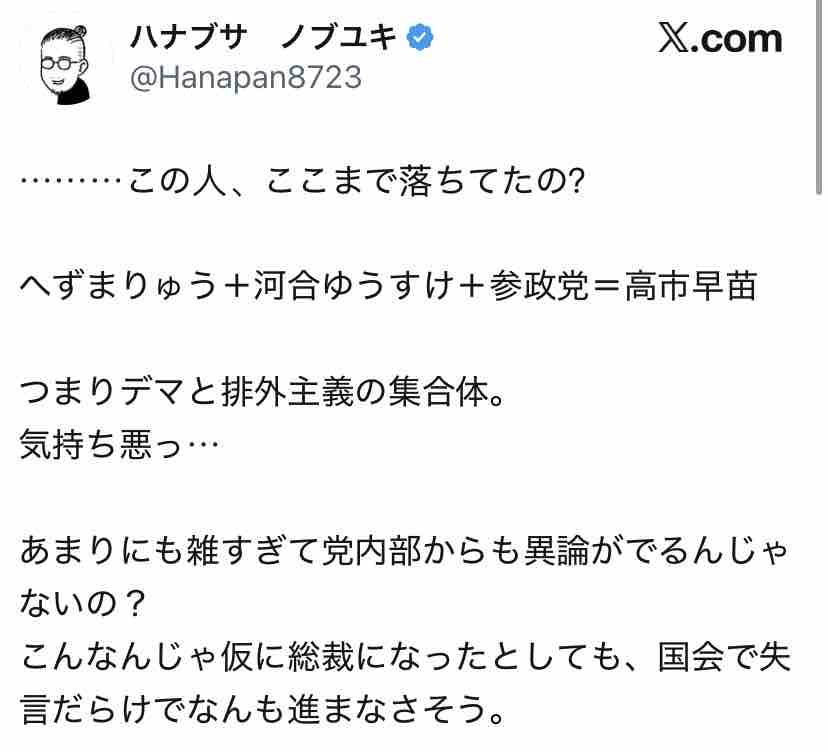 「原口氏は何かとお騒がせな議員ですが、Xのフォロワーは41万人を超え、熱心な支持者もいる政治家です。山尾志桜里氏を参院選の比例代表に擁立しようとし、結局公認は取り消しましたが、『山尾ショック』で国民民主党は支持率が急落中。