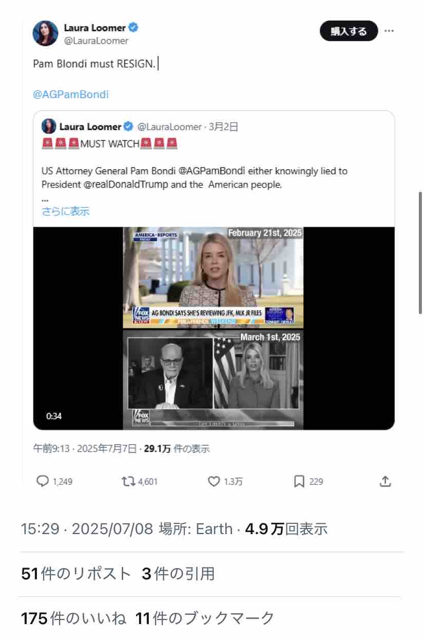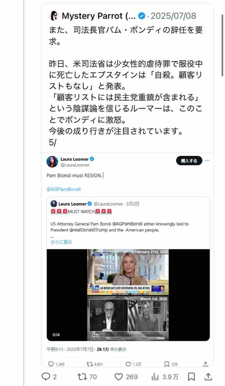 『「私は聞いていない」発言に矛盾 トランプ氏、エプスタイン名簿巡り疑惑深まる 5月時点で司法長官が直接通知か』