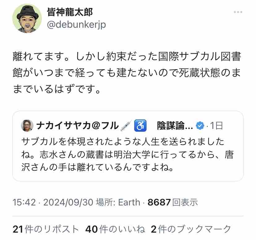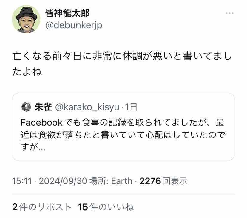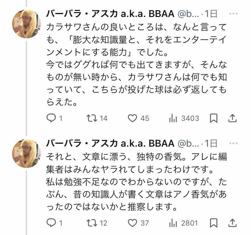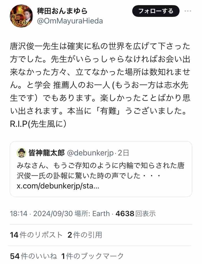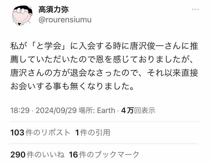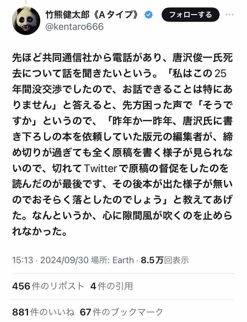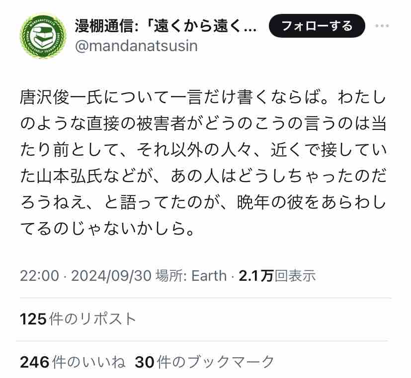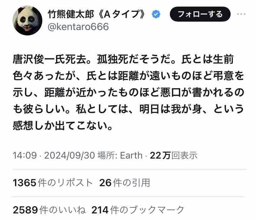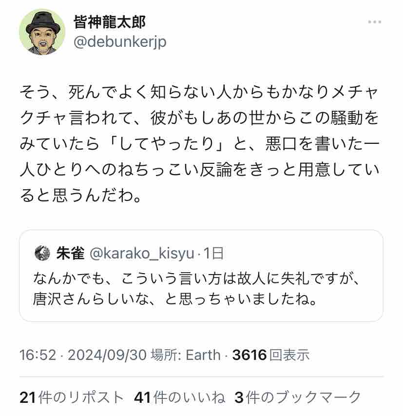 唐沢俊一訃報シリーズ、まだ扱ってなかった著名人の反応をまとめておきまーす。