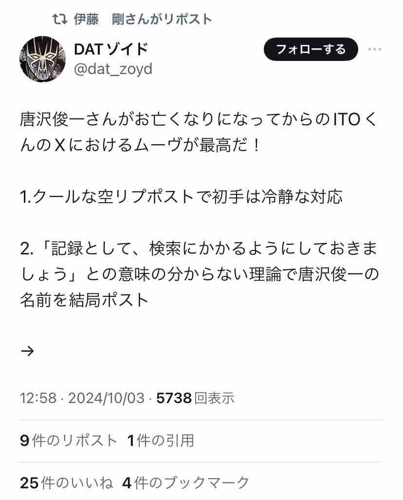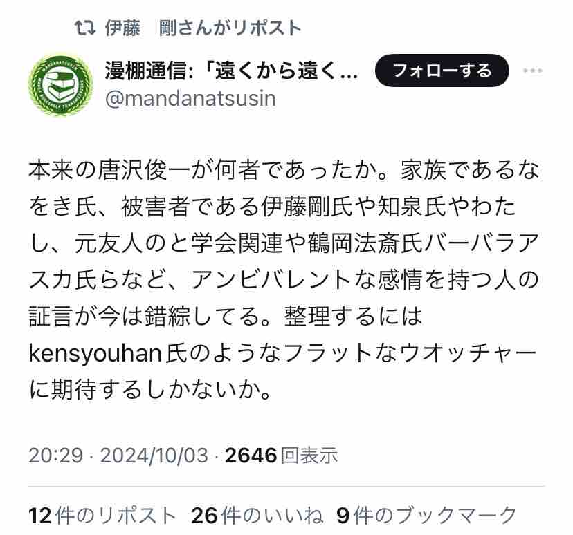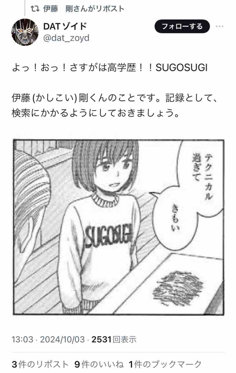 ついでに、何故か伊藤剛がリポストしてるやつ。