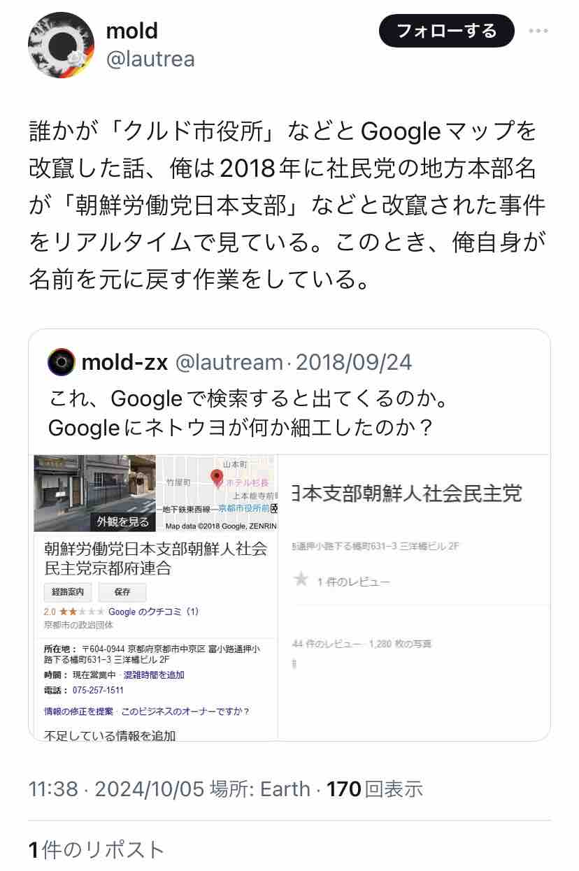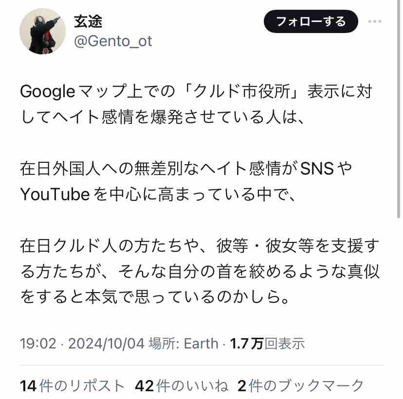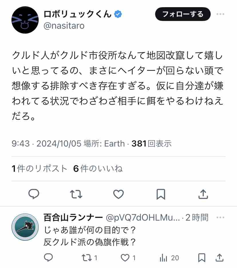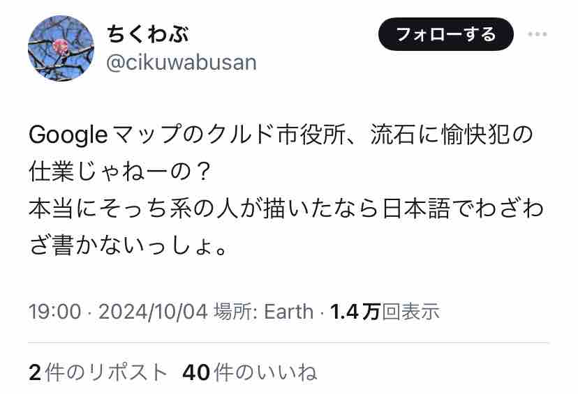 日本語に堪能で、日本のネット民がしばしば行うイタズラにも詳しい者…と考えると、「クルド人の仕業」はかなり苦しいのでは?