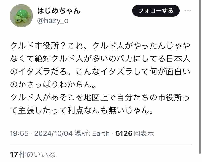 そのせいで「クルド市役所」がXのトレンド入り。