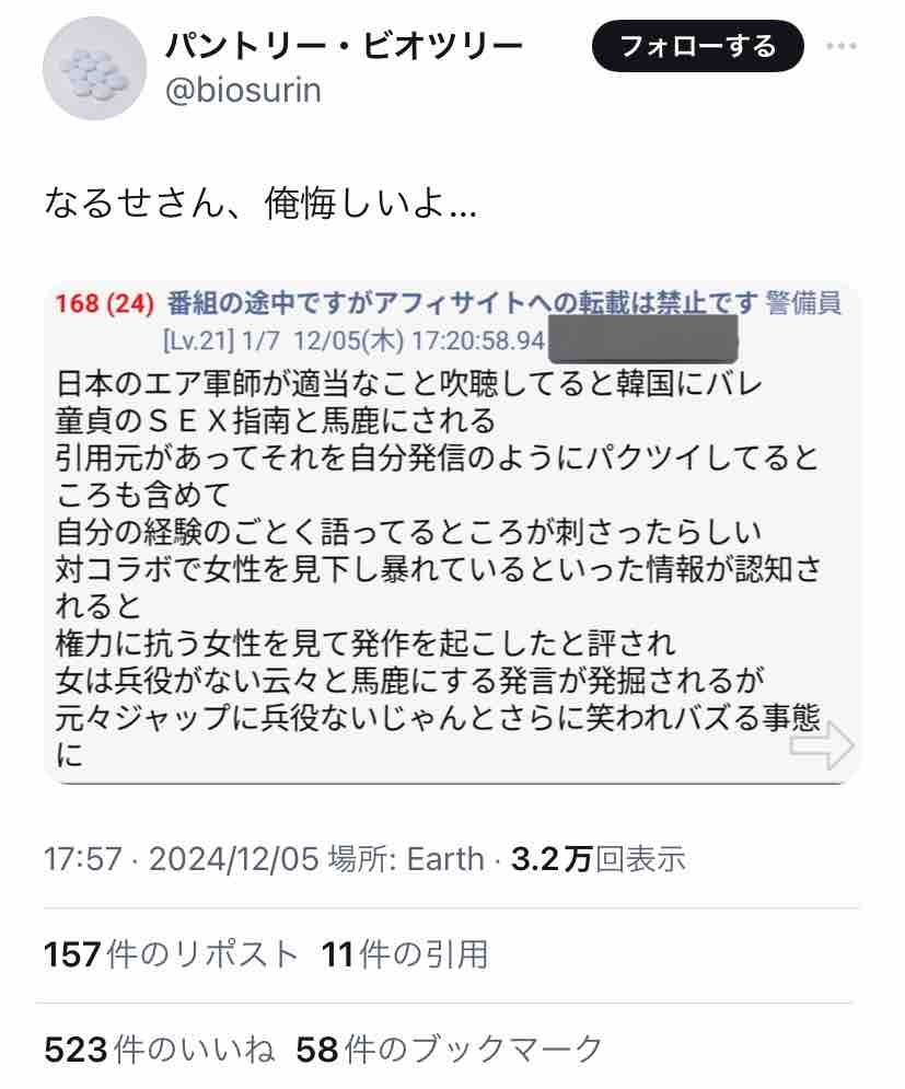 4. Posted by 元「新人読者」 2024年12月10日 22:42