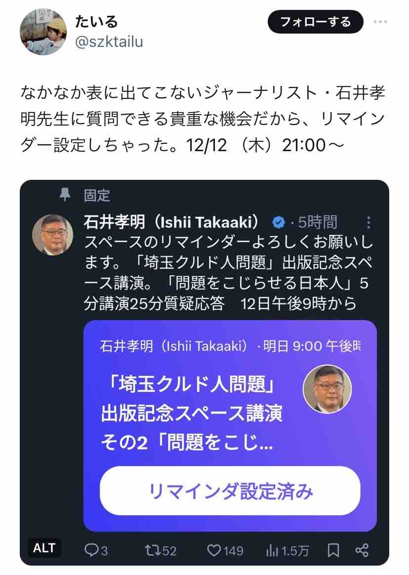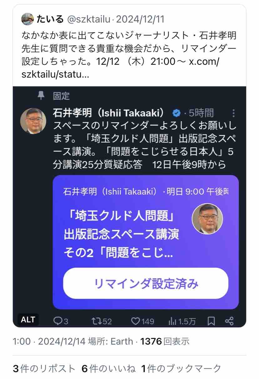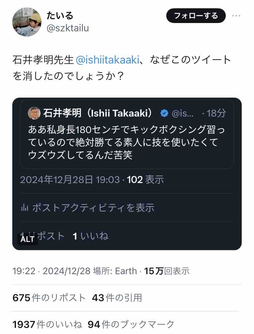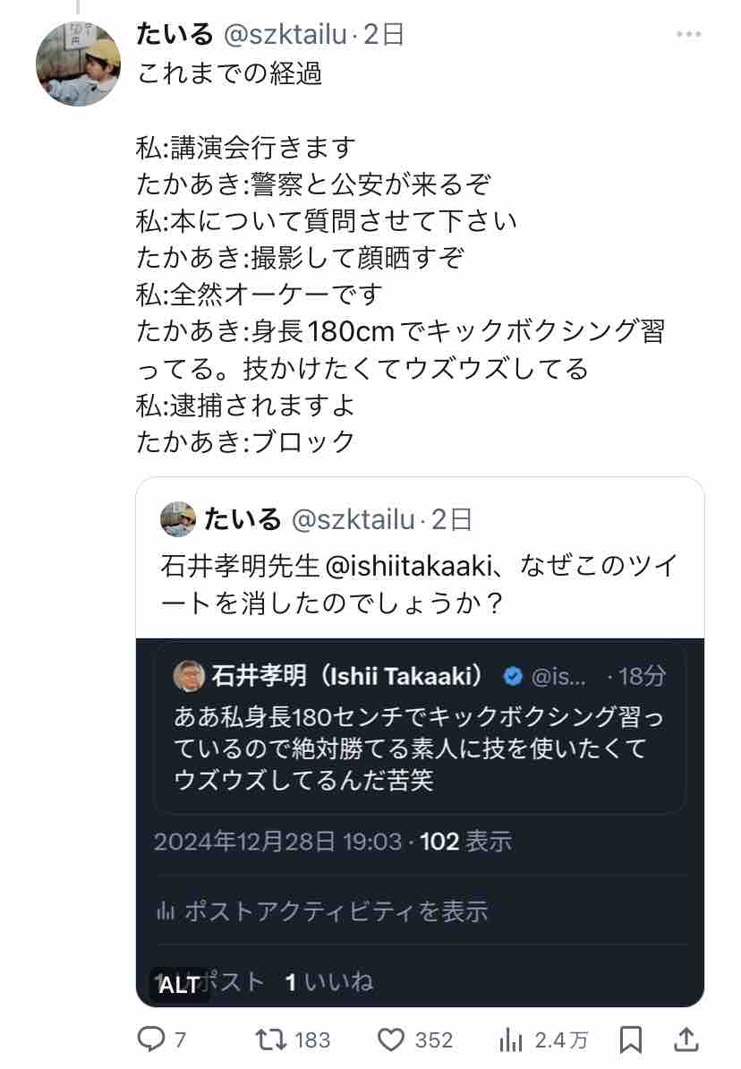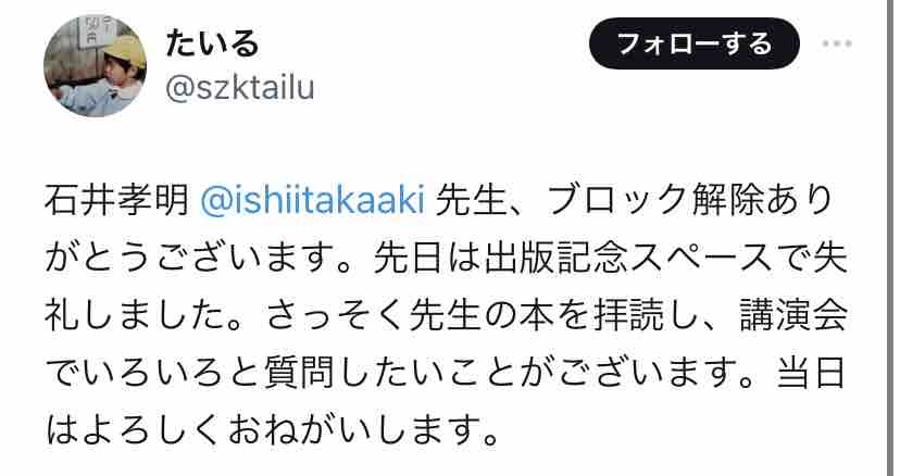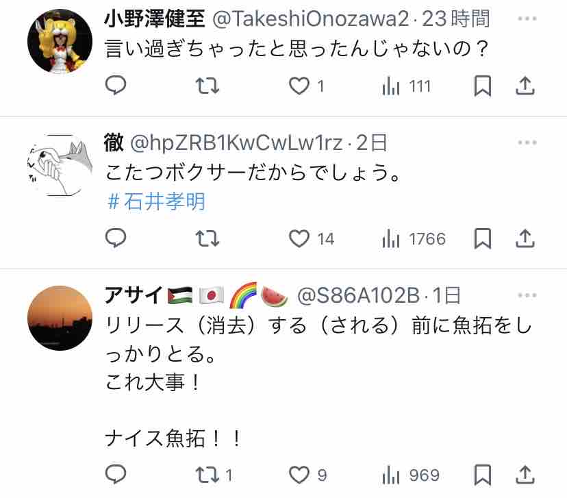 たいると石井孝明、両者のポストを時系列順に追うと…