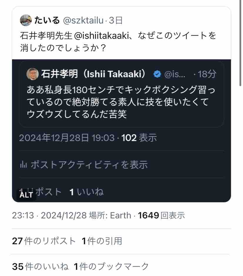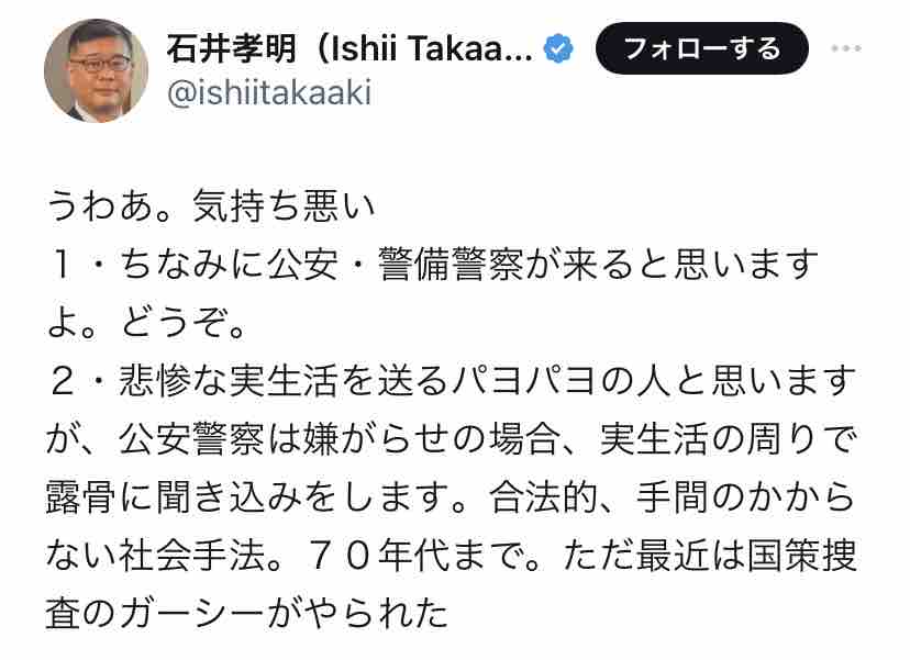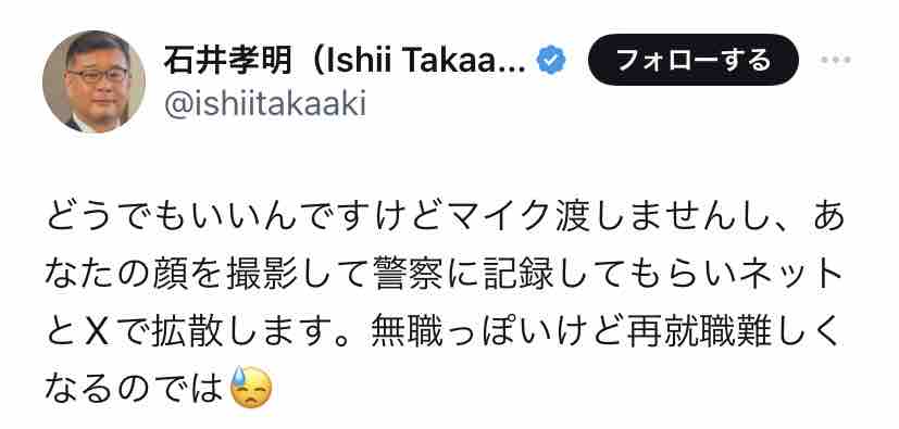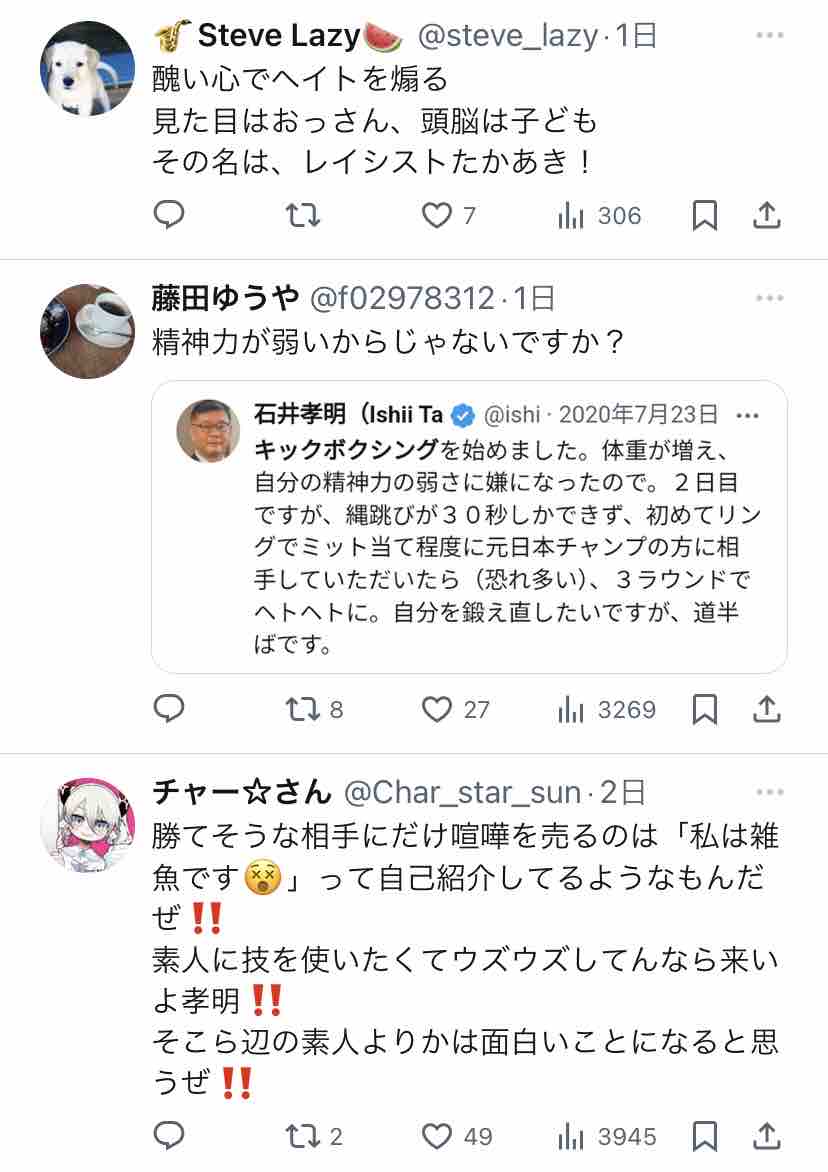 ちなみに石井孝明は突っ込まれると「暇なの?」とか「こっちは無職のアンタみたいに暇じゃない」とかで返すのが平常運転。