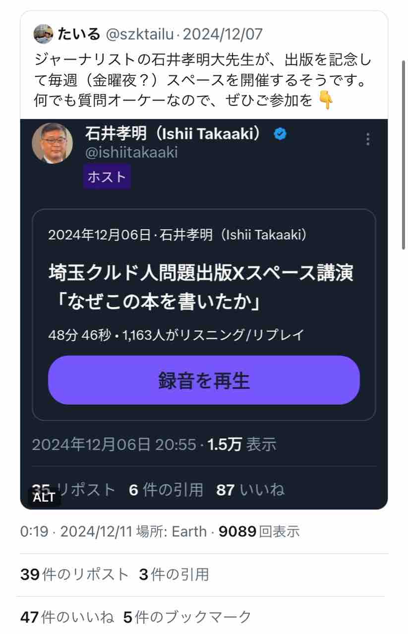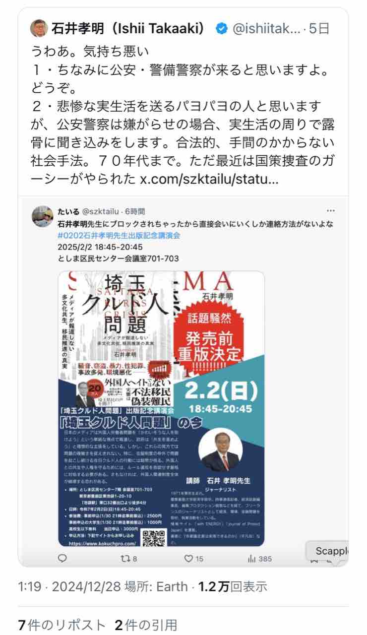 クルド人ヘイトの第一人者・石井孝明が何だかものすごくカッコ悪いムーブを…!
