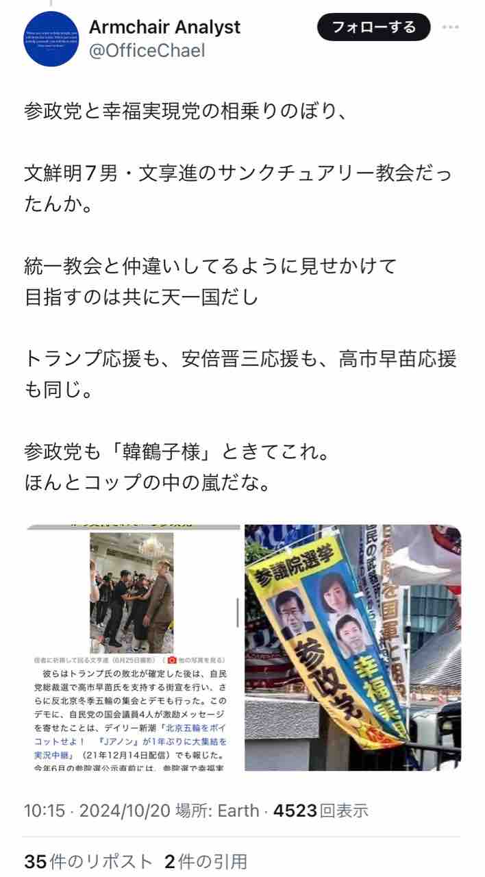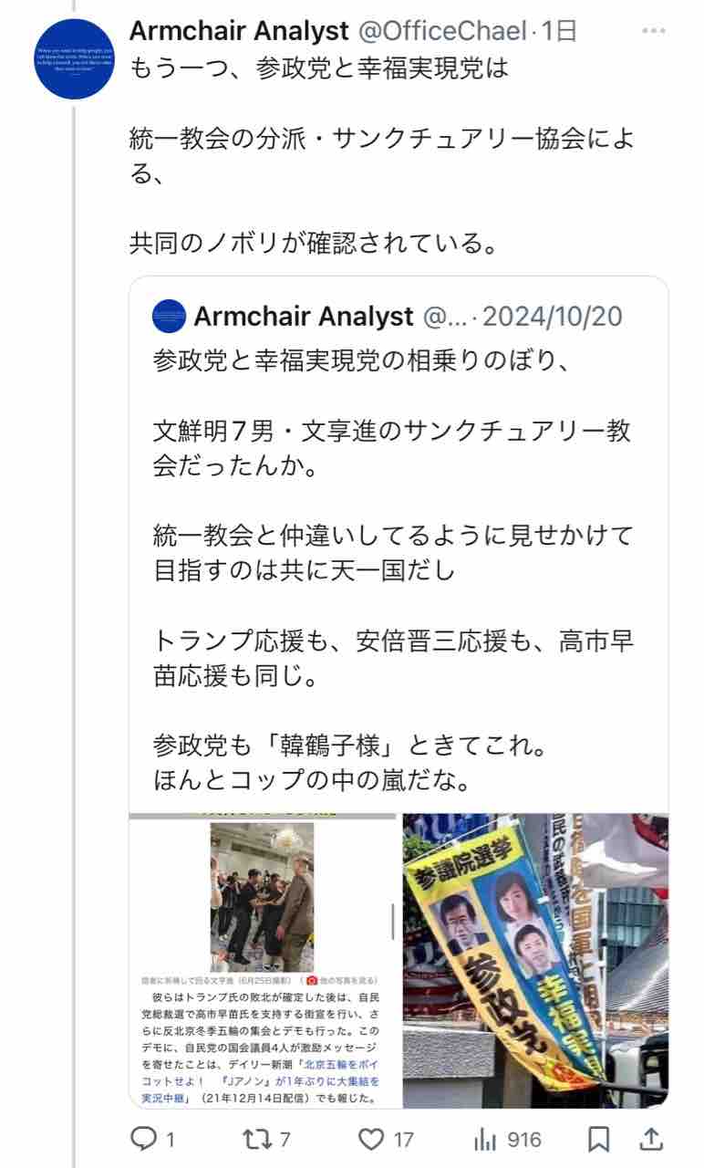 で、↑この最後の方にある参政党・幸福実現党の相乗りのぼりの件…