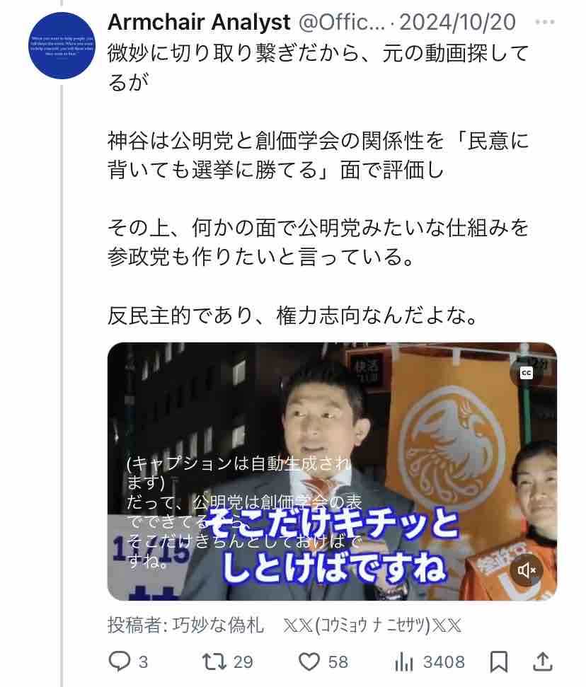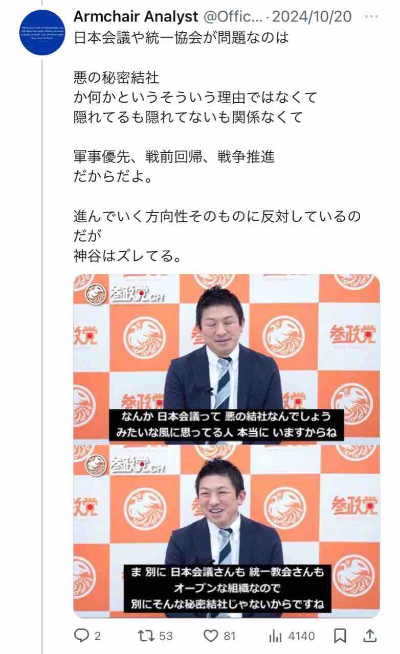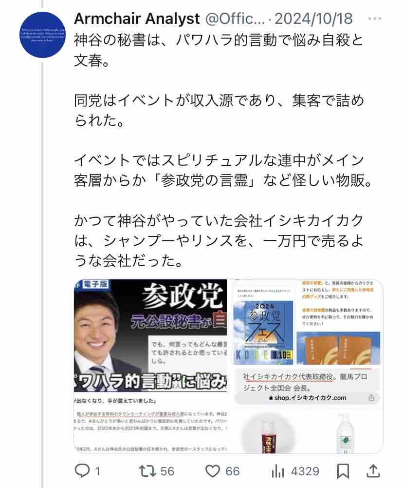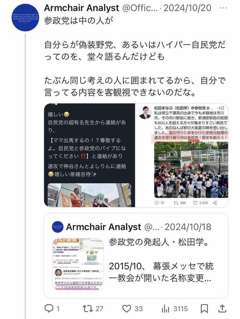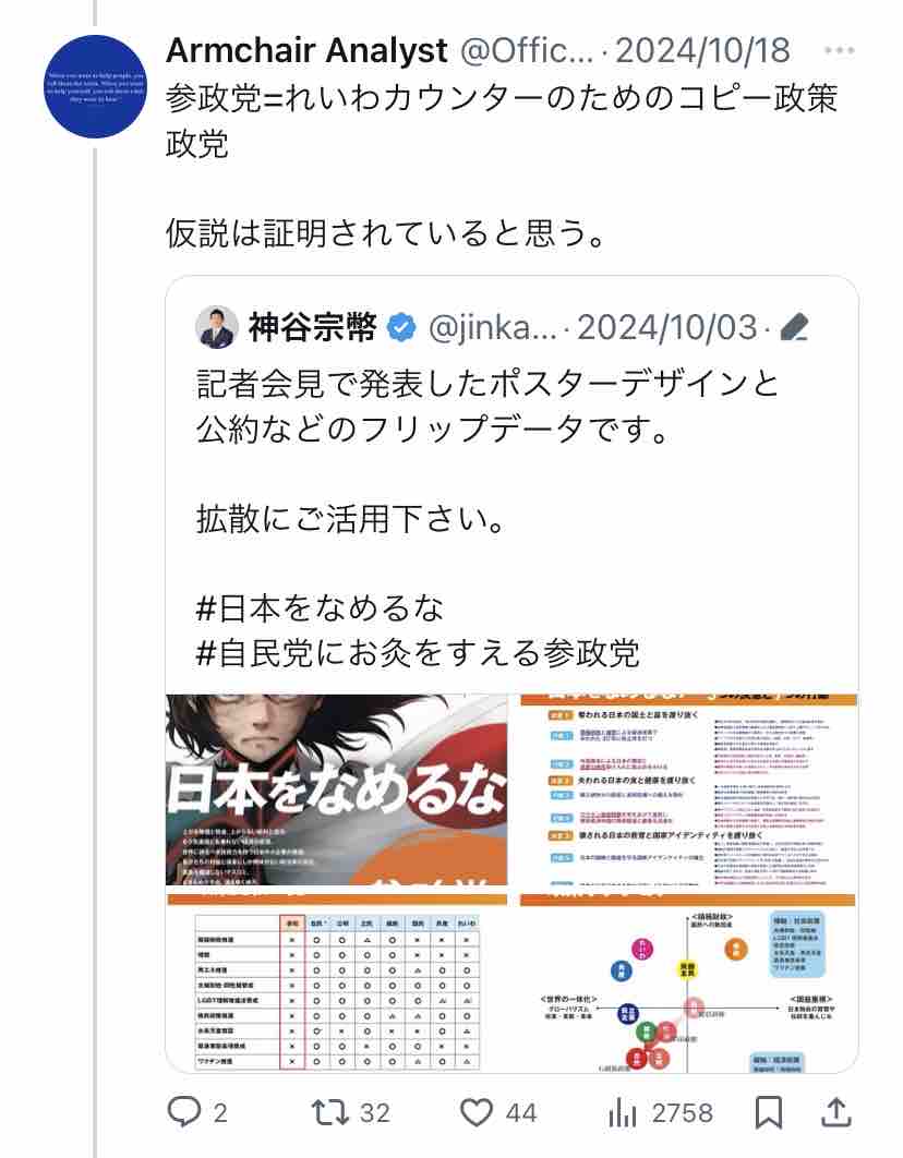 posfieの「うんちアカウント」さん、参政党批判にやたら力が入ってて面白い