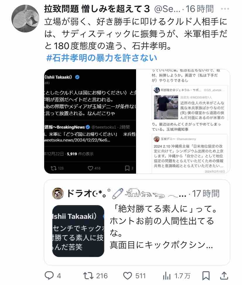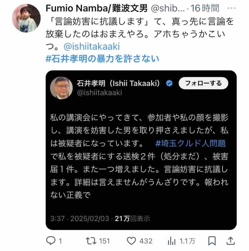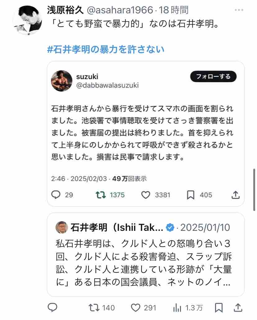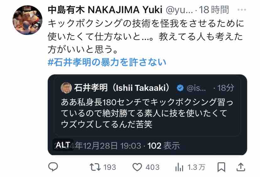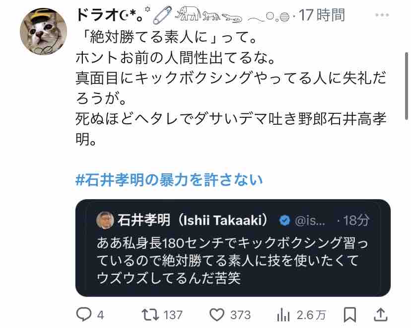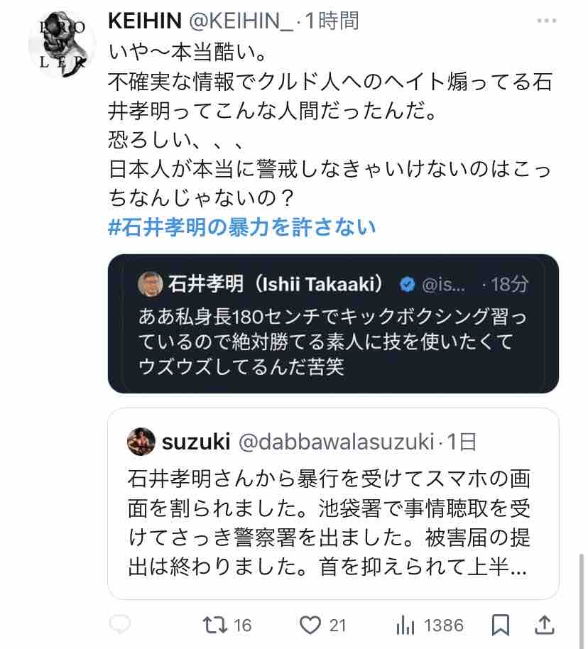Xで『#石井孝明の暴力を許さない』がトレンド入りしてましたー。