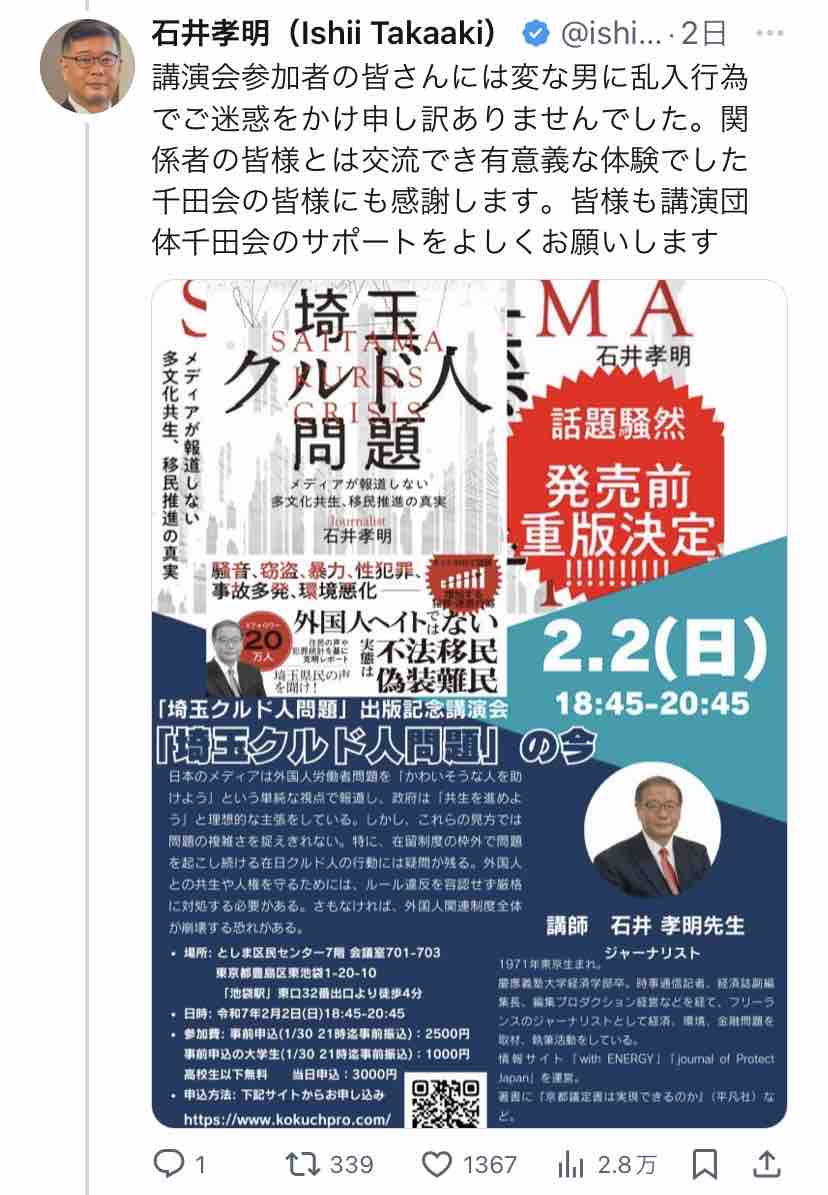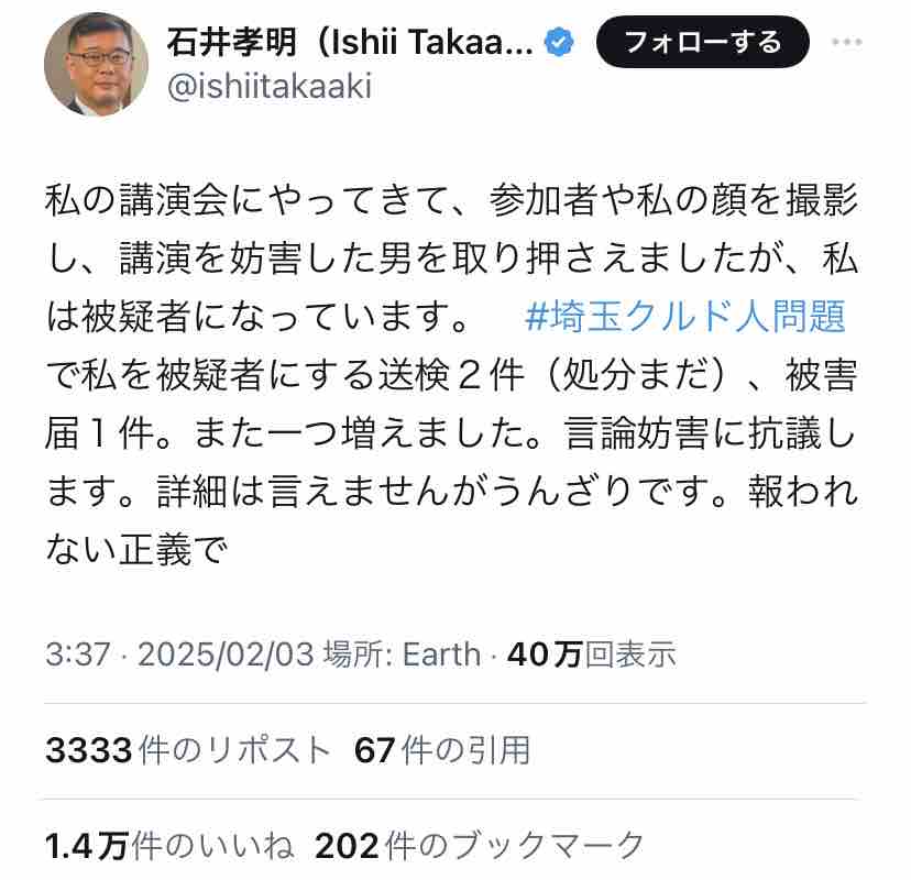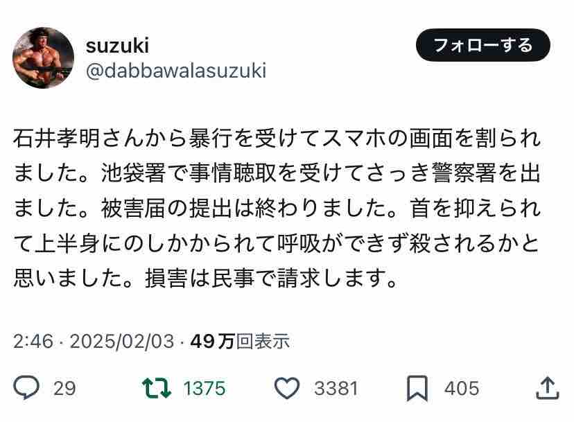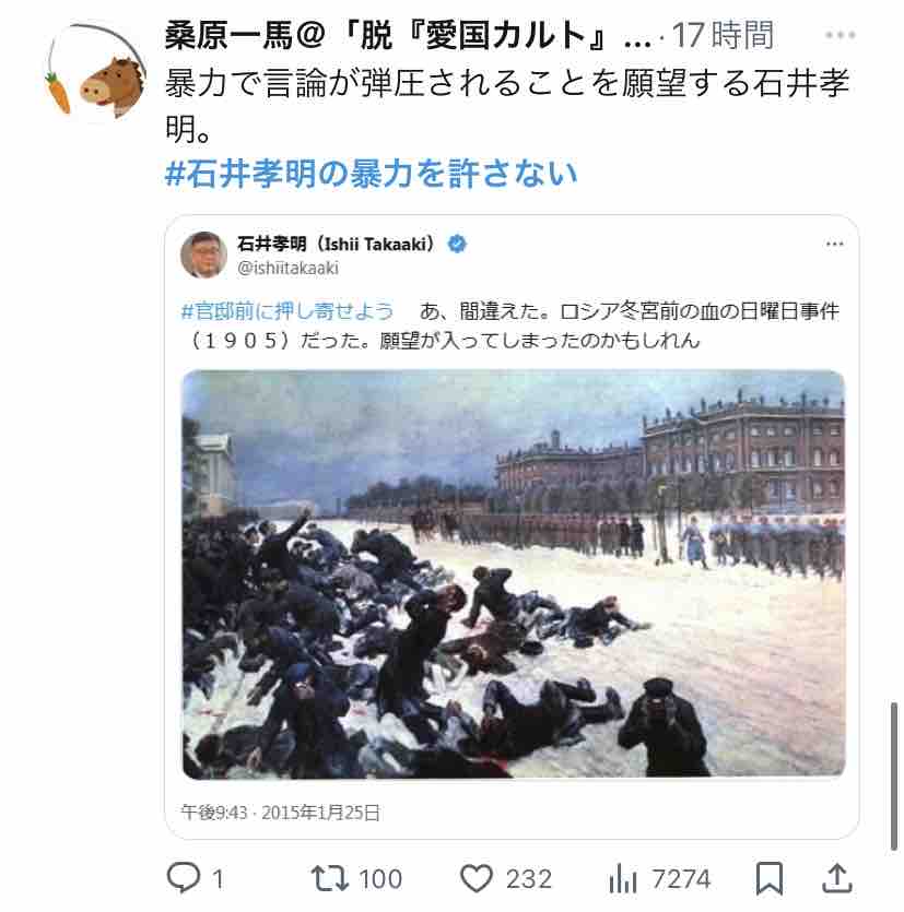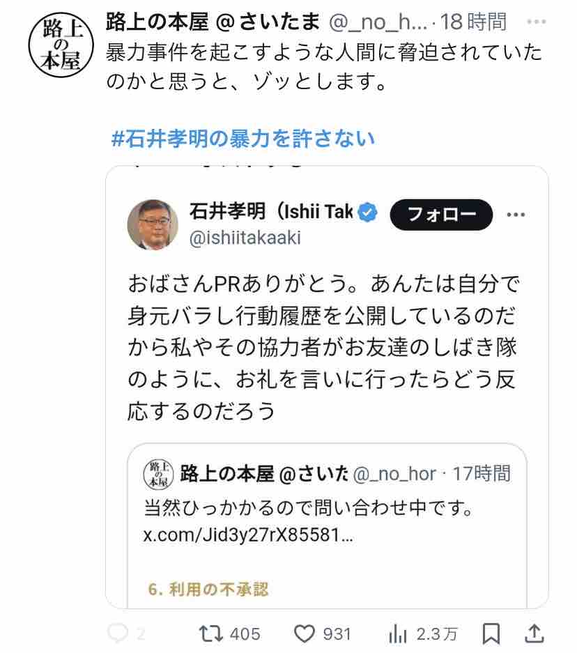 Xで『#石井孝明の暴力を許さない』がトレンド入りしてましたー。