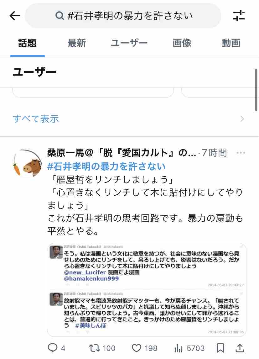 では『#石井孝明の暴力を許さない』、「話題」で表示された順に紹介していきまーす。