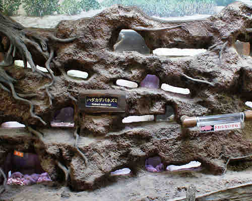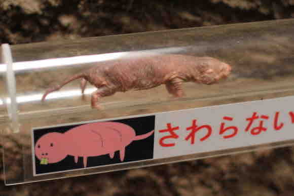 透明なアクリルパイプをハダカデバネズミが次々に駆け抜ける、通称「えれぇクリスタルパレード」。