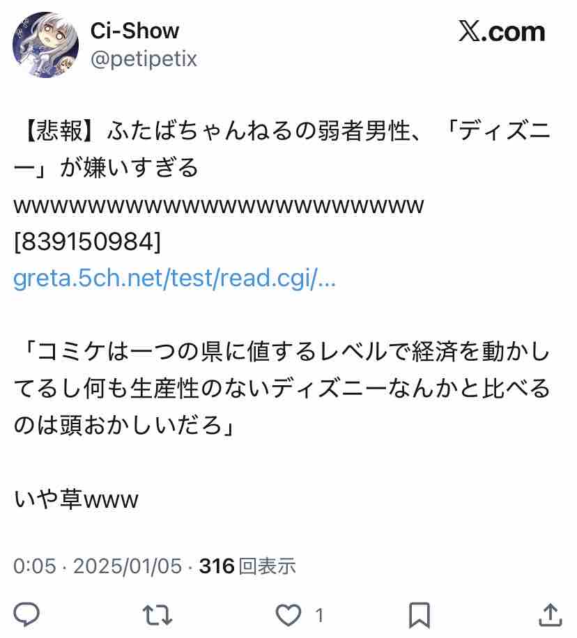 最近、「弱者男性はネズミーを嫌う」という話を知って愕然。