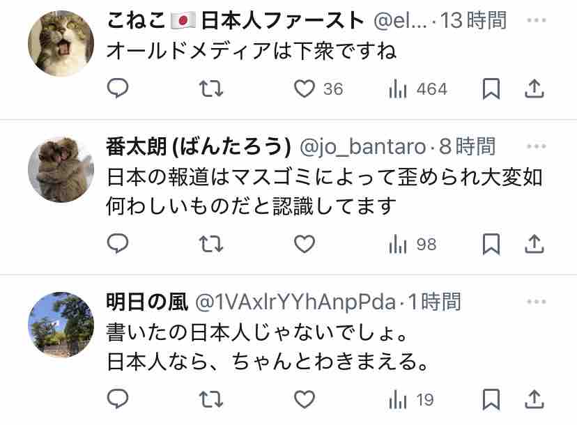 「長年ネットで調べてるけど、あの事件もこの事件も犯人は在日なんだ。でもそれは全然報道されない。この国は異常だよ、すでに乗っ取られてる」
