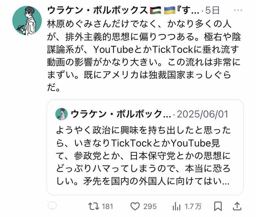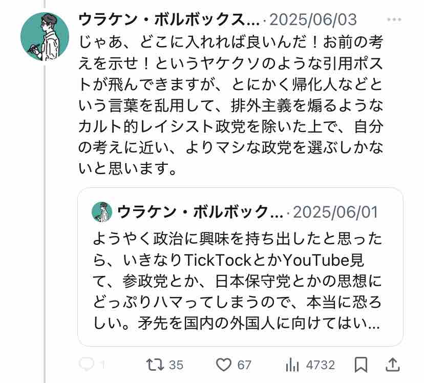 「左のネトウヨ」というワードが一定の支持を得て着実に定着しつつあるのも、この雑な対処からのポイ捨て、レッテル貼って「こいつは以降差別主義者として扱ってOK」みたいなヤバい態度丸出しの反ウヨさんが増えて来たからなんよな