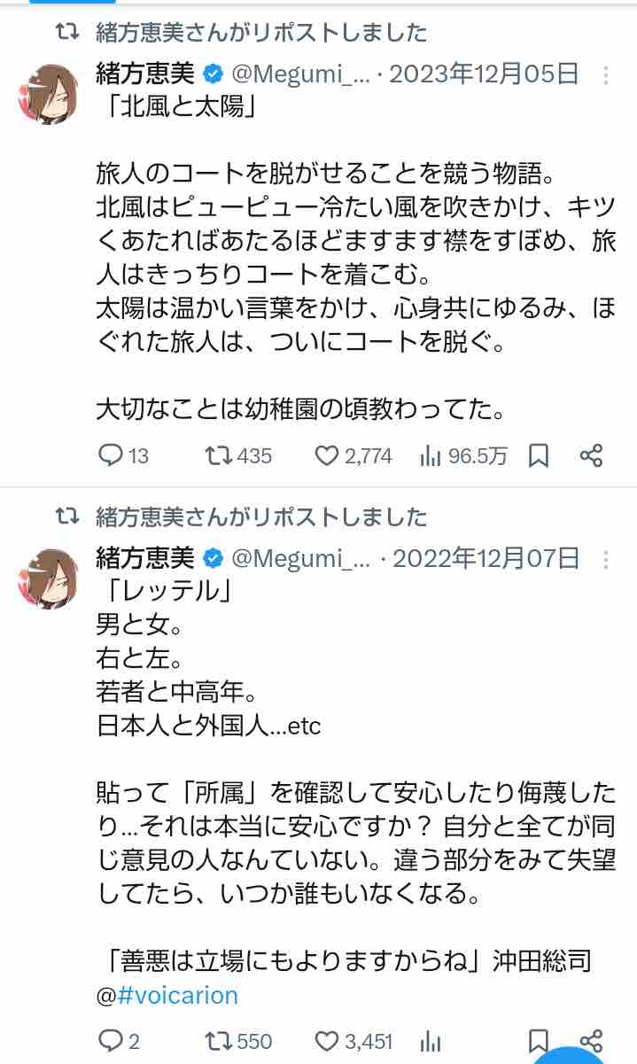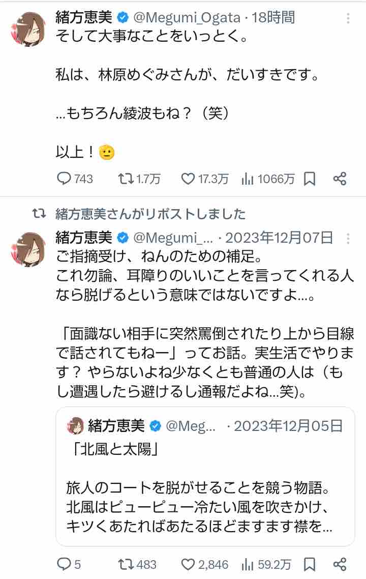 田村ゆかりさんがウヨってるのは知ってましたが、林原さんや緒方さんまで…