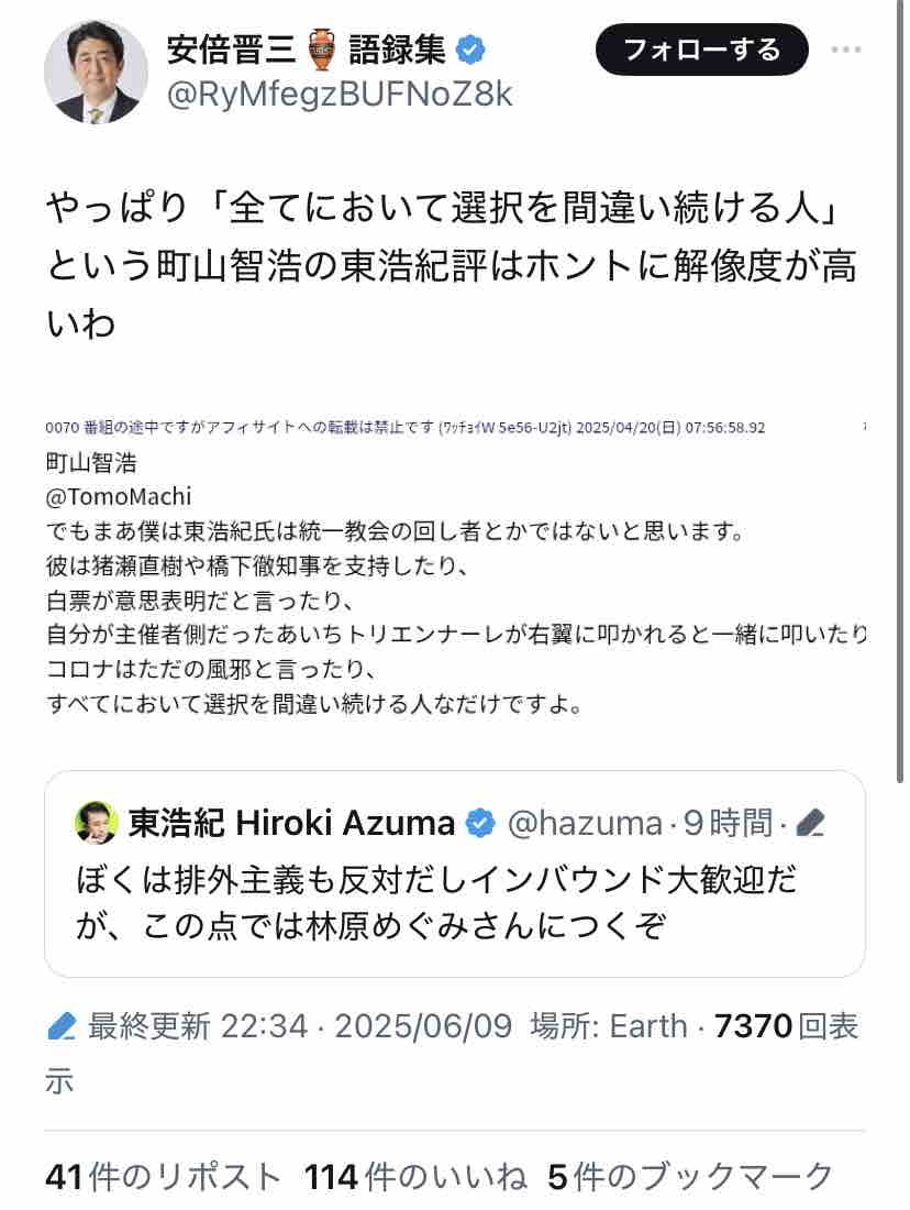 ↑その反応に絡めて、ご本人が↓上手くクロスカウンターで反論してはるー!