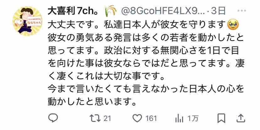 「私達心ある者が彼女を守ります」ではなく、『私達日本人が彼女を守ります』なのよ、こういう人の考え方は。