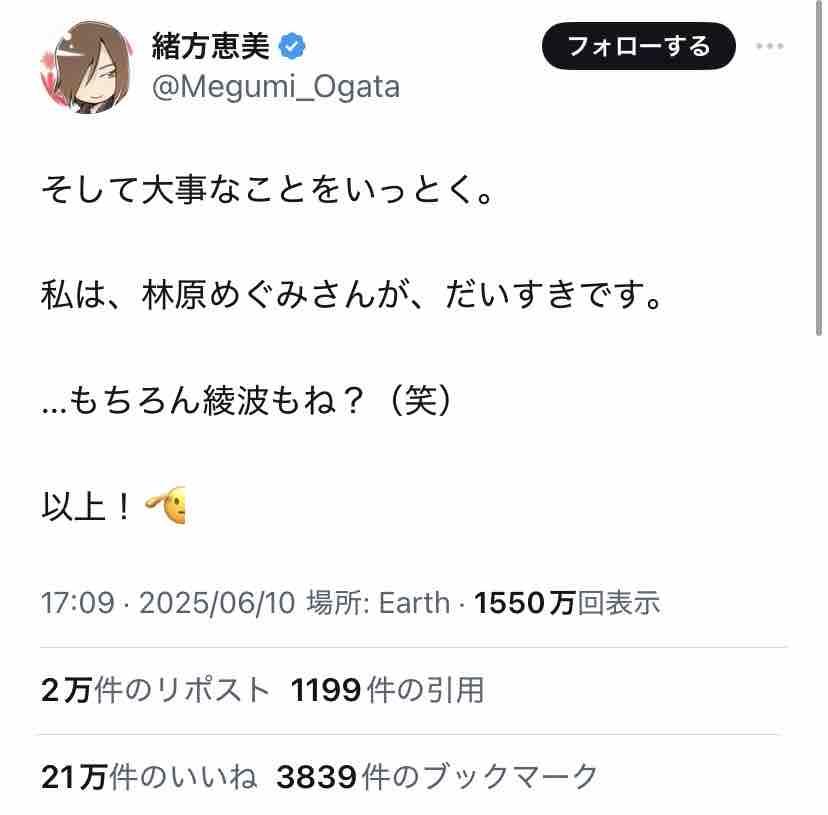 オタではありますが、アニメ…わけても声優にはあんま詳しくないんで、今回初めて知りましたー。