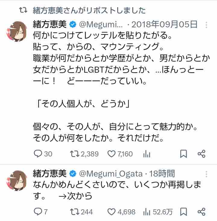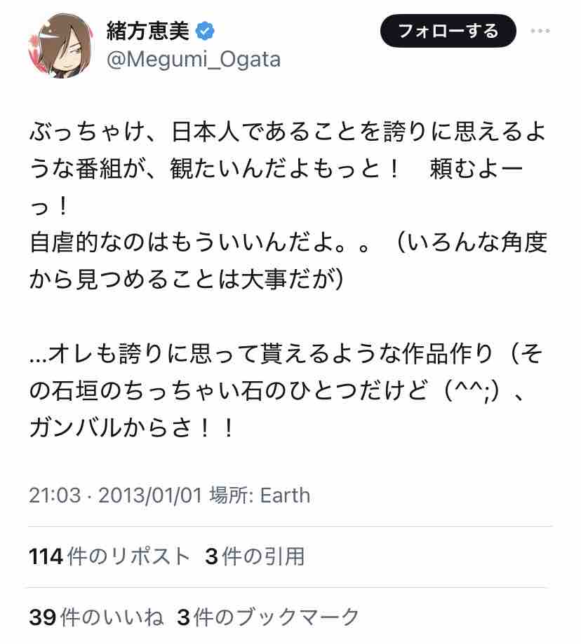 そしてソレに無批判な緒方恵美も、自分自身の言ったコト守れてないし。