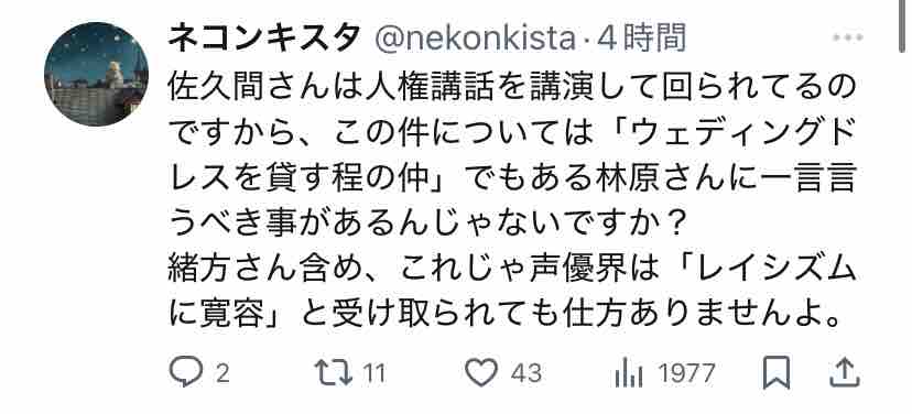 ↑佐久間レイのポストに付いたリプライが↓コレ。