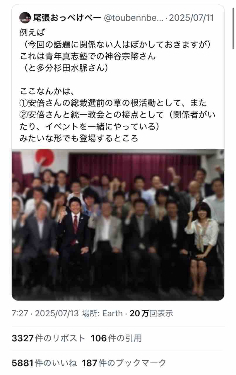 あと参政党は神谷宗幣からして杉田水脈とつながりが深いんよね。